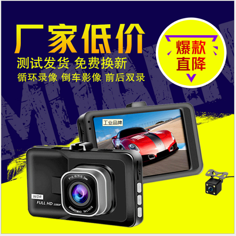 跨境汽车行车记录仪 新款高清双镜头3寸黑金刚隐藏式厂家直销DVR
