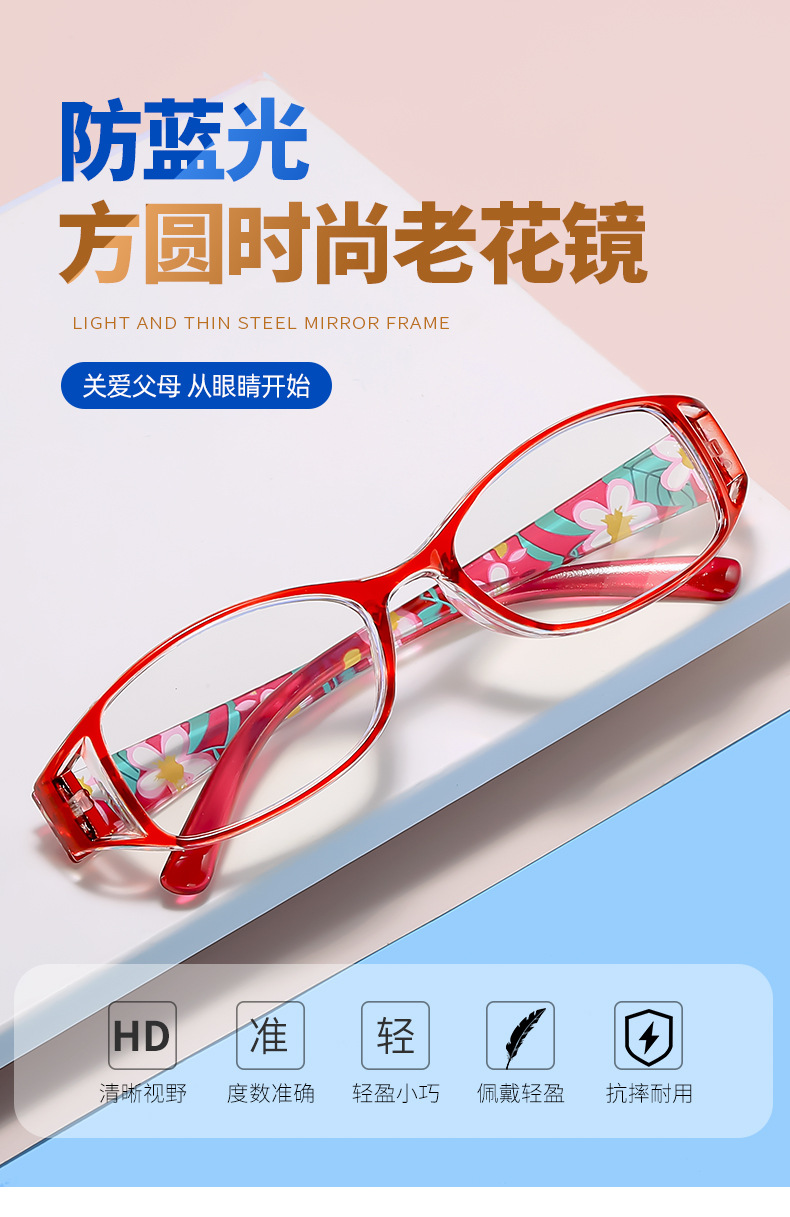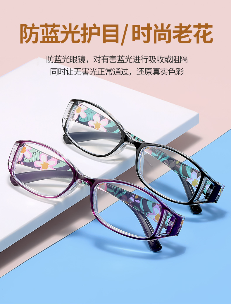 印花老花镜优雅女防蓝光复古高清老人眼镜阅读超轻时尚老花眼镜