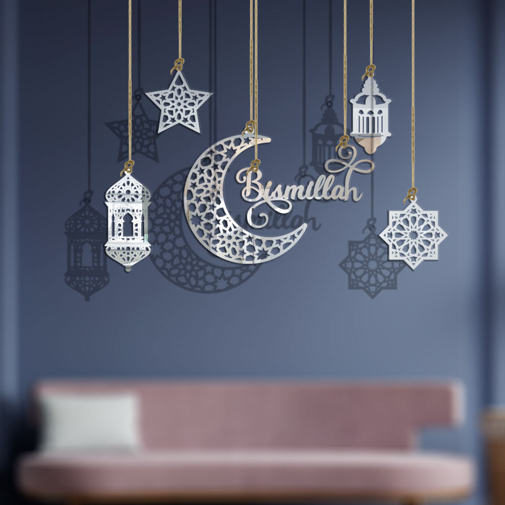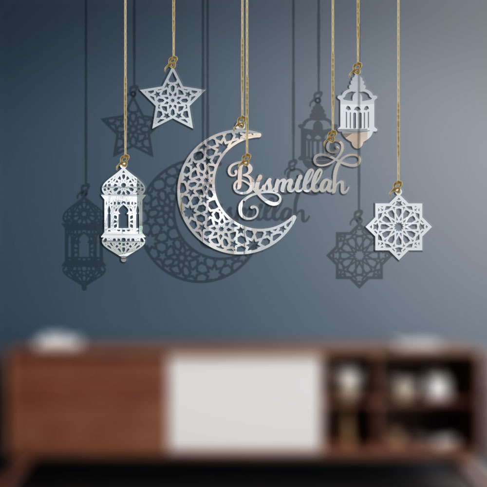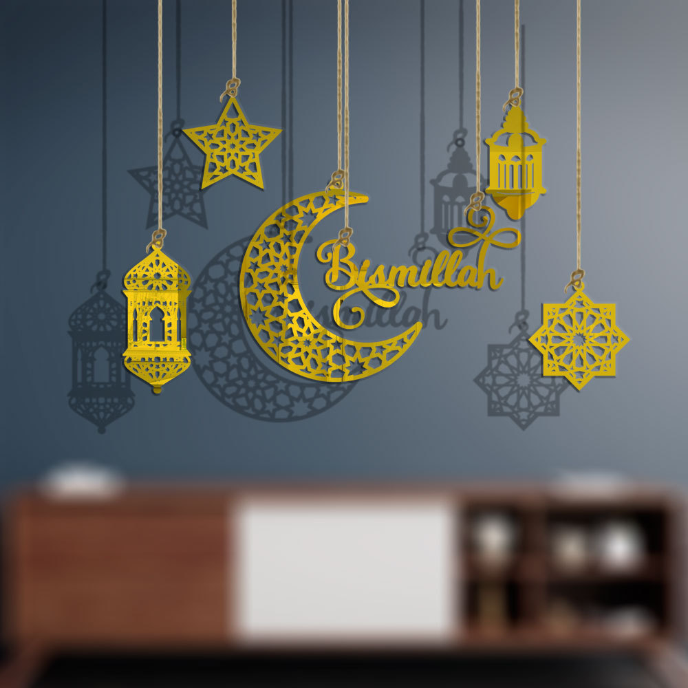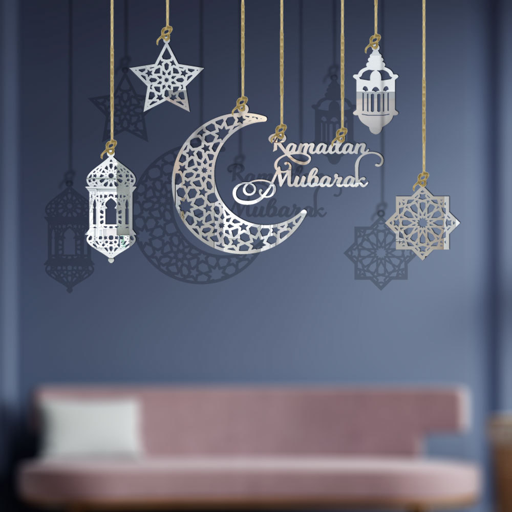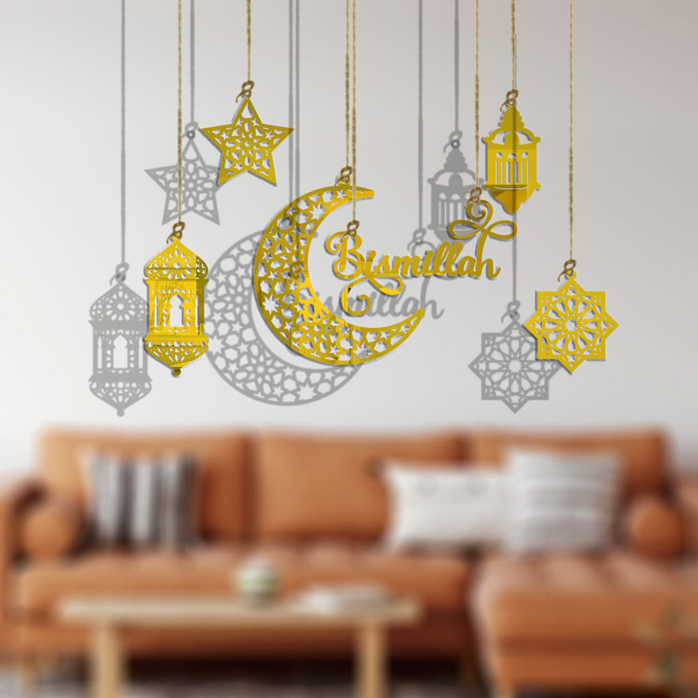 JM868-872跨境外贸镜面装饰挂件月亮星星立体亚克力镜面挂饰