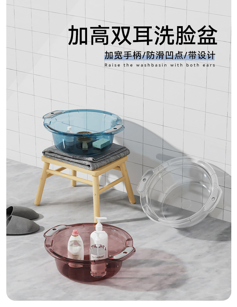 洗脸盆家用脸盆大号宿舍洗菜洗衣厨房宿舍泡脚透明把手双耳洗脚盆