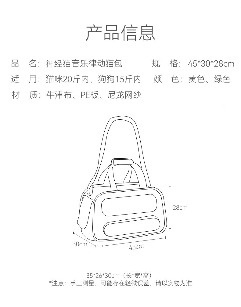 新款猫咪音乐律动猫包狗狗外出斜挎包便携式大容量背包四季宠物包