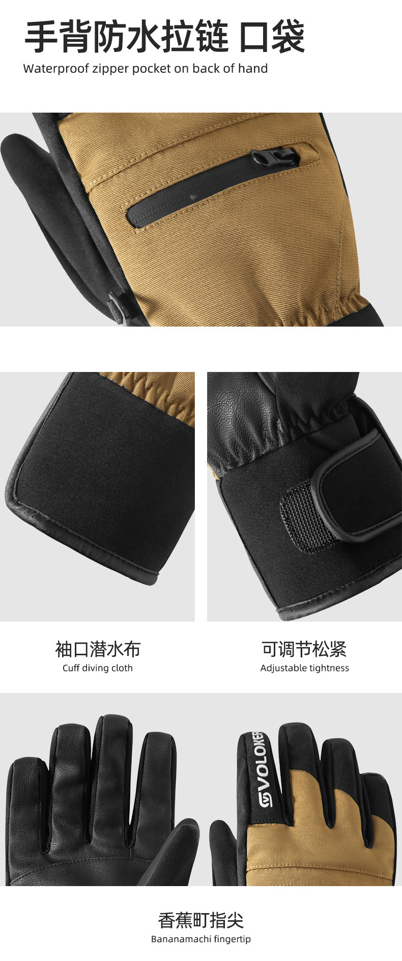 滑雪手套男士冬季保暖骑行摩托车防寒加绒加厚触屏棉防寒防水手套