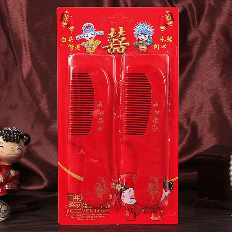 婚庆结婚用品批发喜庆结婚梳子大红色嫁妆梳子塑料梳子木质梳子