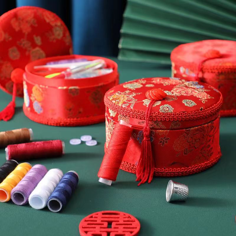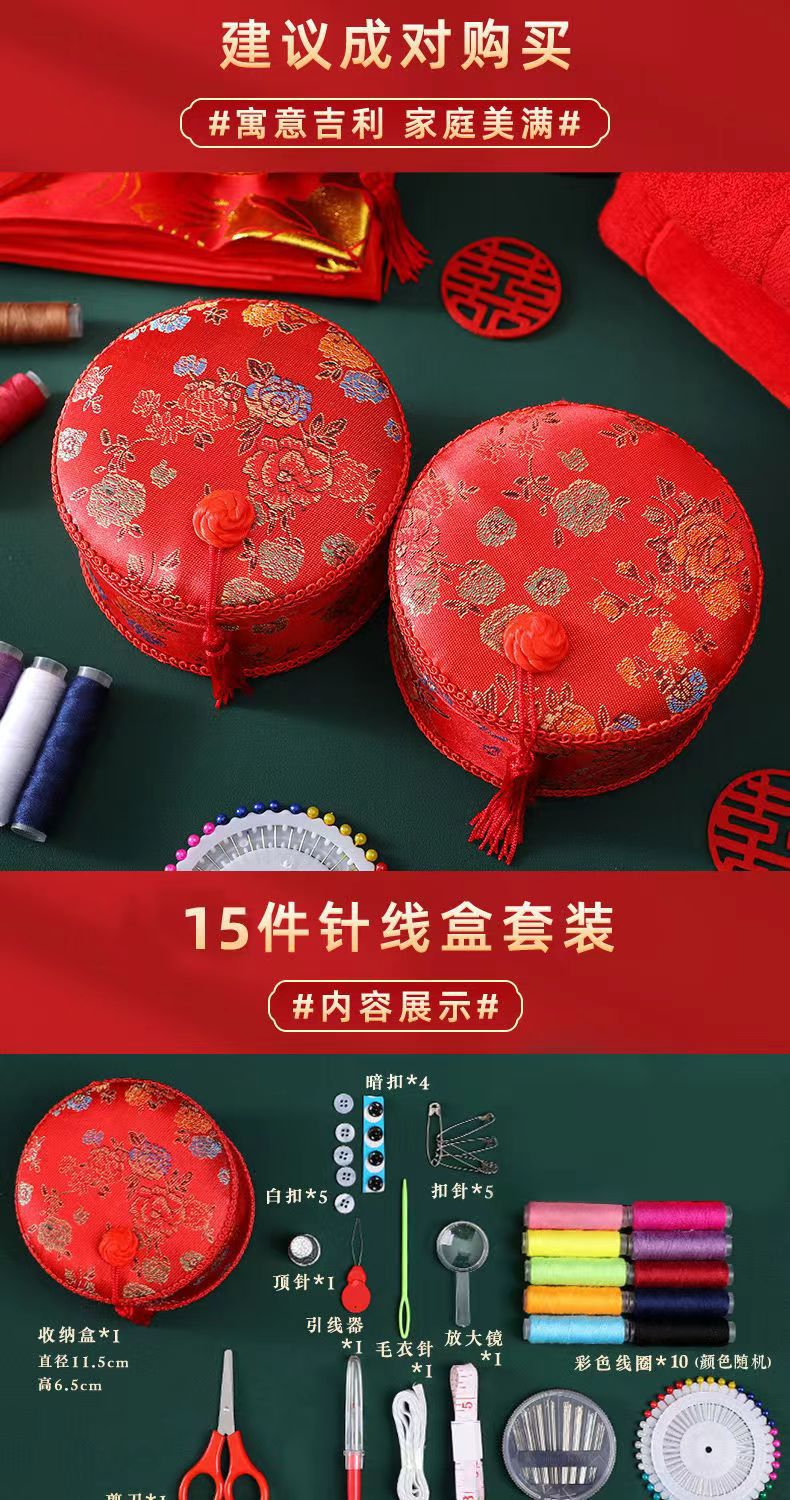 结婚喜庆用拼针线盒女方陪嫁嫁妆收纳盒新娘家备针线包婚庆针线盒