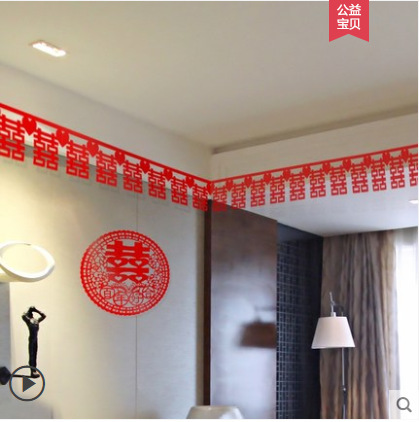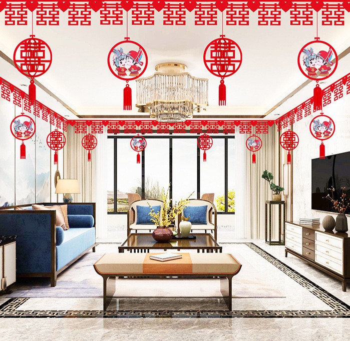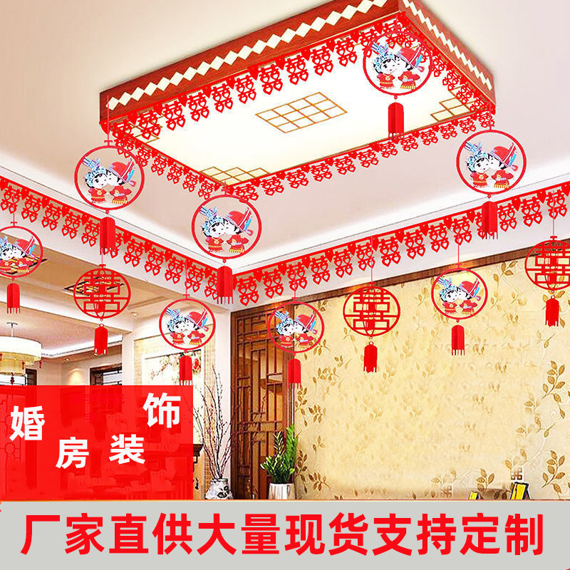 婚房布置喜字拉花新房卧室客厅房顶布置喜帘男女方婚礼吊顶套餐