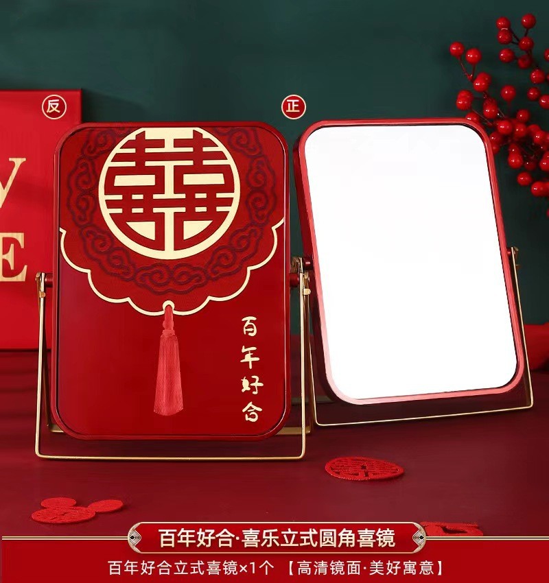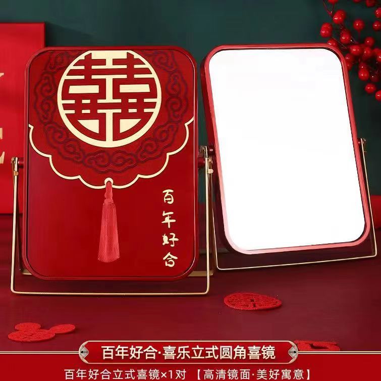 婚庆用品结婚镜子一对红色流苏新娘镜子婚礼嫁妆红色嫁妆陪嫁物品