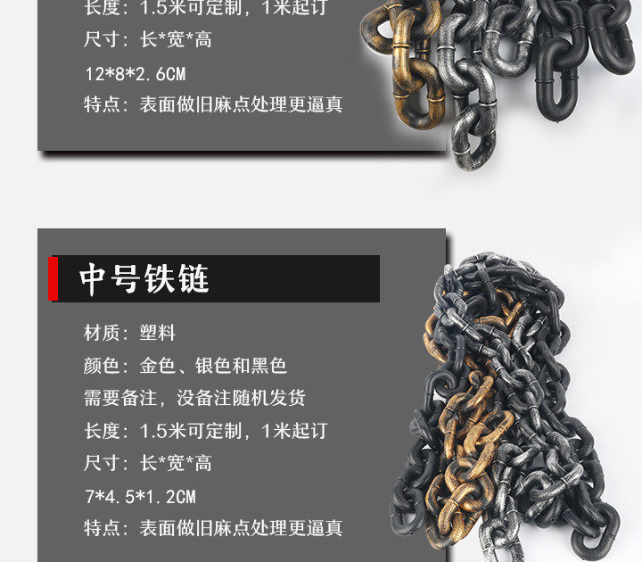 酒吧链条锁链刑具摆件影视铁链万圣节塑料链子假密室万圣鬼屋