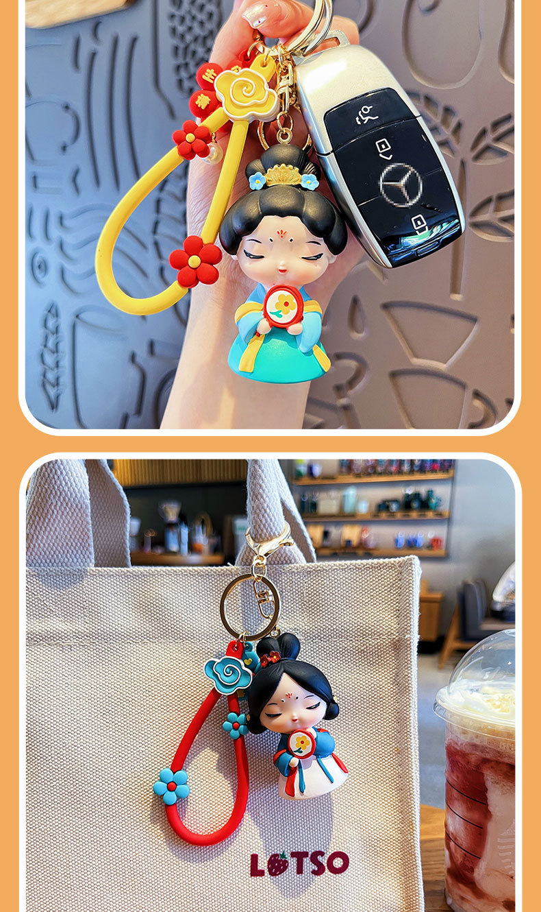 创意唐代仕女钥匙扣国风汉服女孩卡通可爱情侣包包挂饰小礼品批发