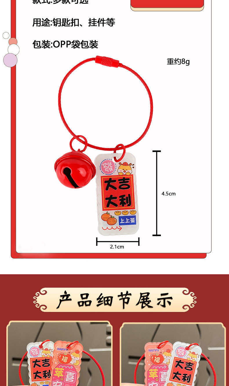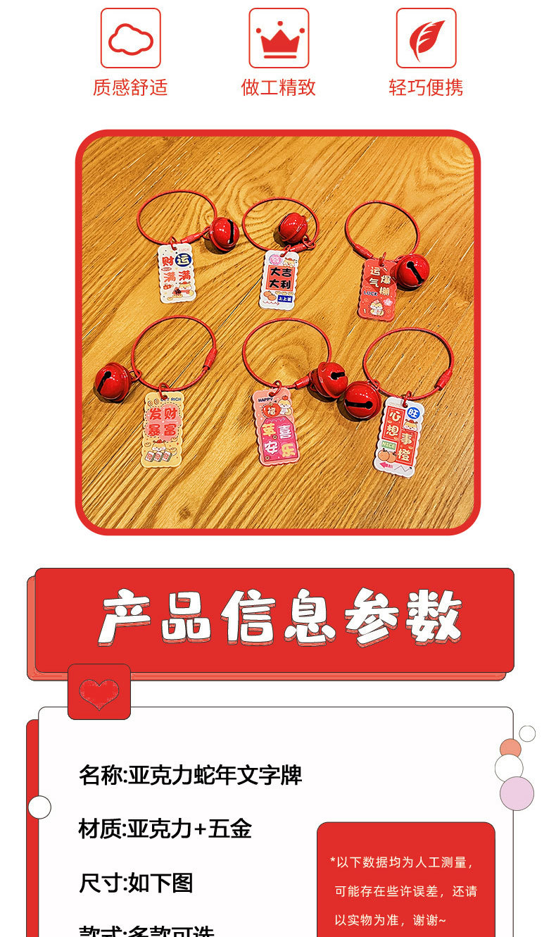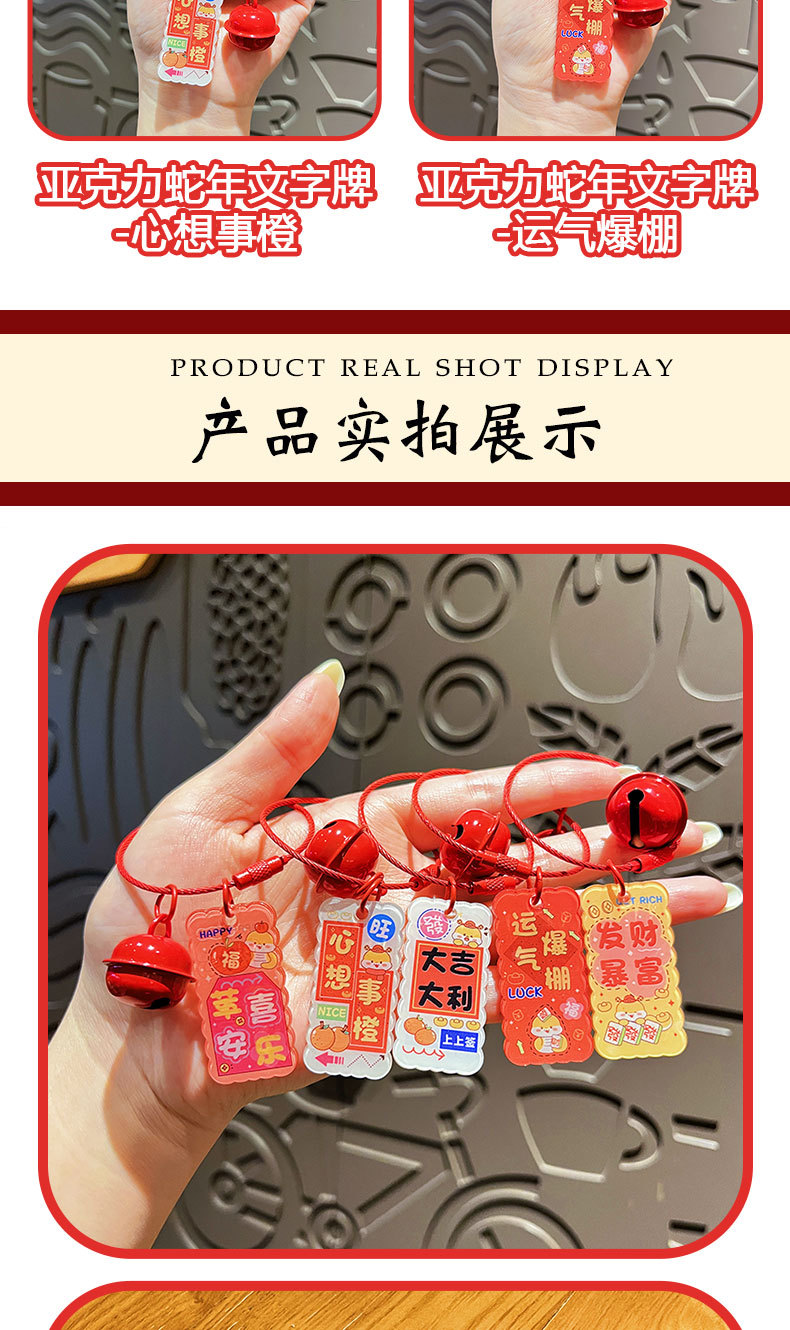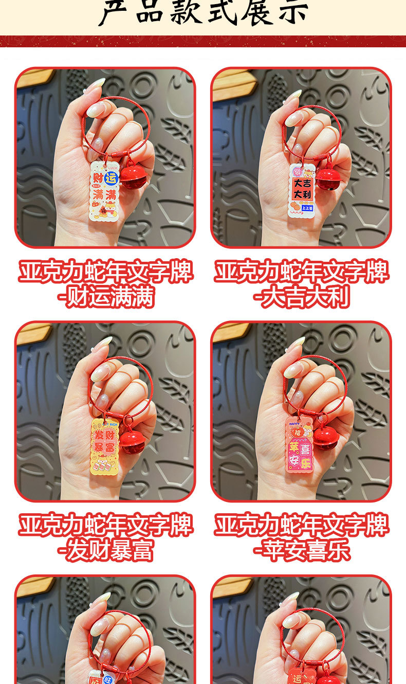 创意亚克力蛇年文字牌钥匙扣美好寓意情侣背包挂件新年小礼品批发