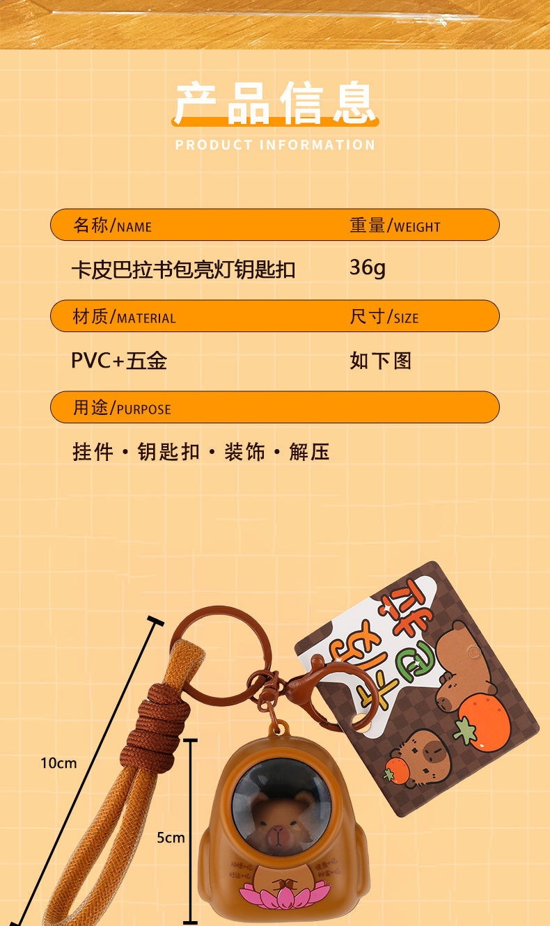 原创卡皮巴拉书包亮灯钥匙扣可爱卡通水豚发光儿童包包挂件小礼品