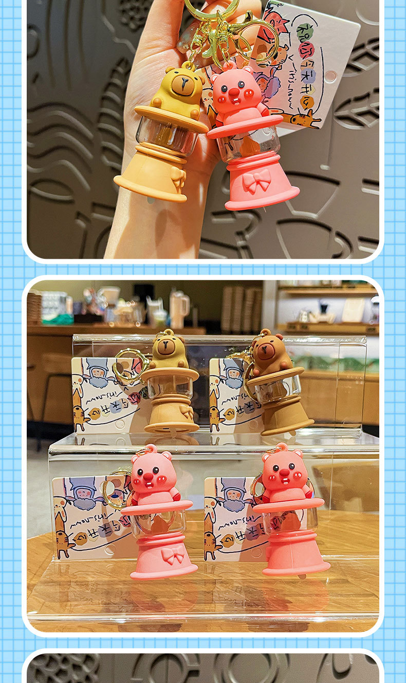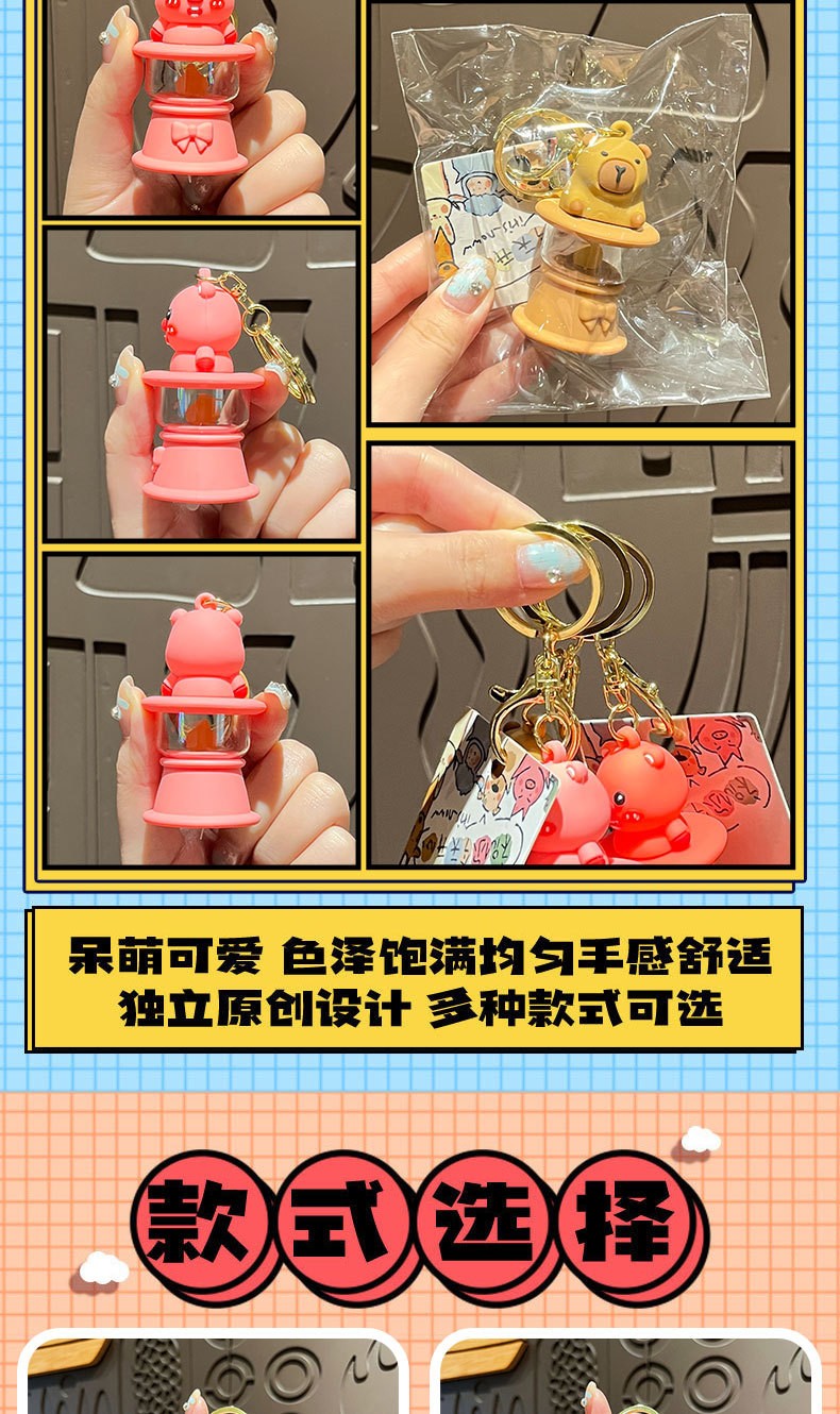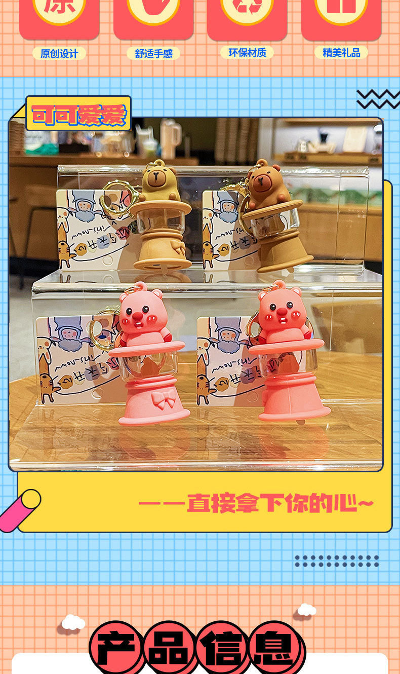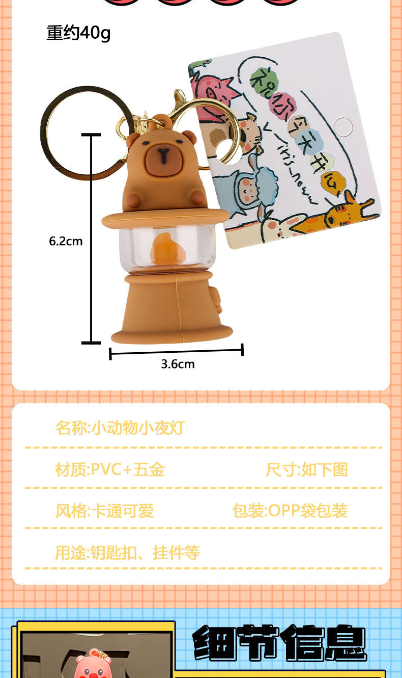 原创小动物夜灯卡皮巴拉钥匙扣可爱卡通小海狸发光包包挂件小礼品