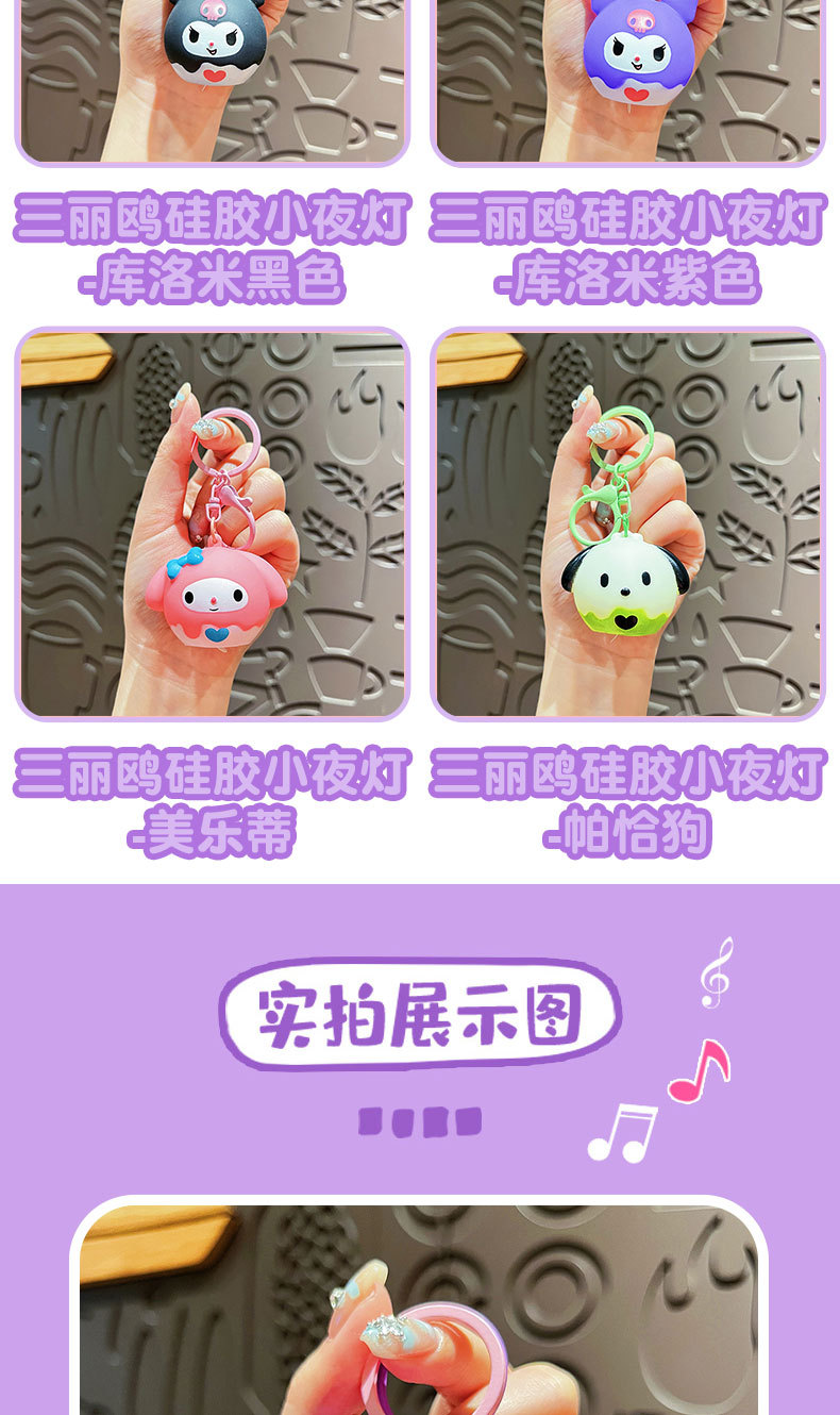 创意三丽鸥硅胶小夜灯钥匙扣可爱发光库洛米卡通KT包包挂件小礼品