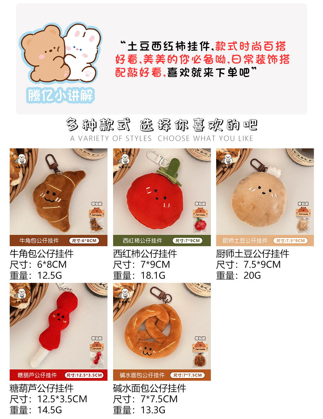新款可爱卡通蔬菜面包公仔挂件少女毛绒玩偶挂饰趣味食玩挂坠批发
