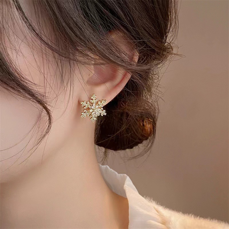 耳环轻奢小众高级感圣诞雪花耳环耳饰雪花锆石耳钉秋冬爆款耳钉