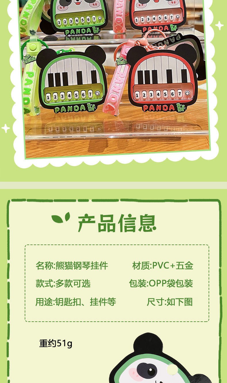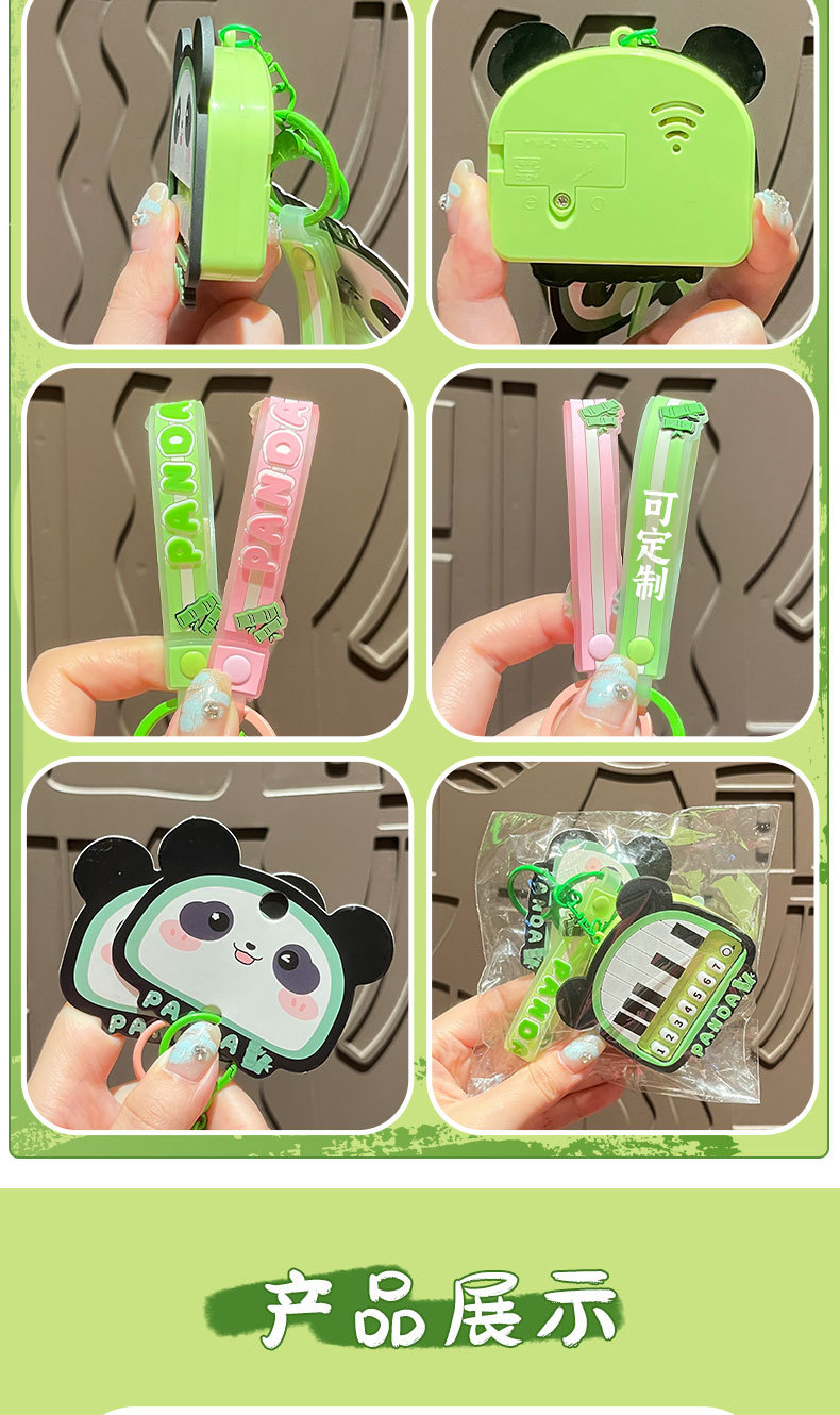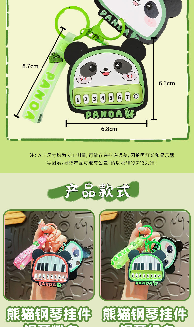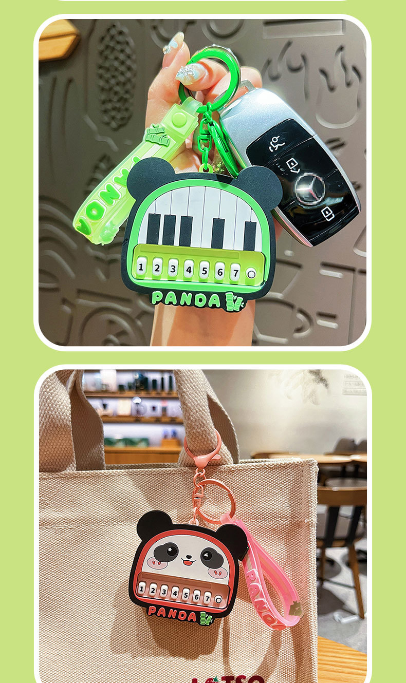 原创熊猫钢琴钥匙扣可爱卡通情侣包挂件发光发声玩具钥匙链小礼品