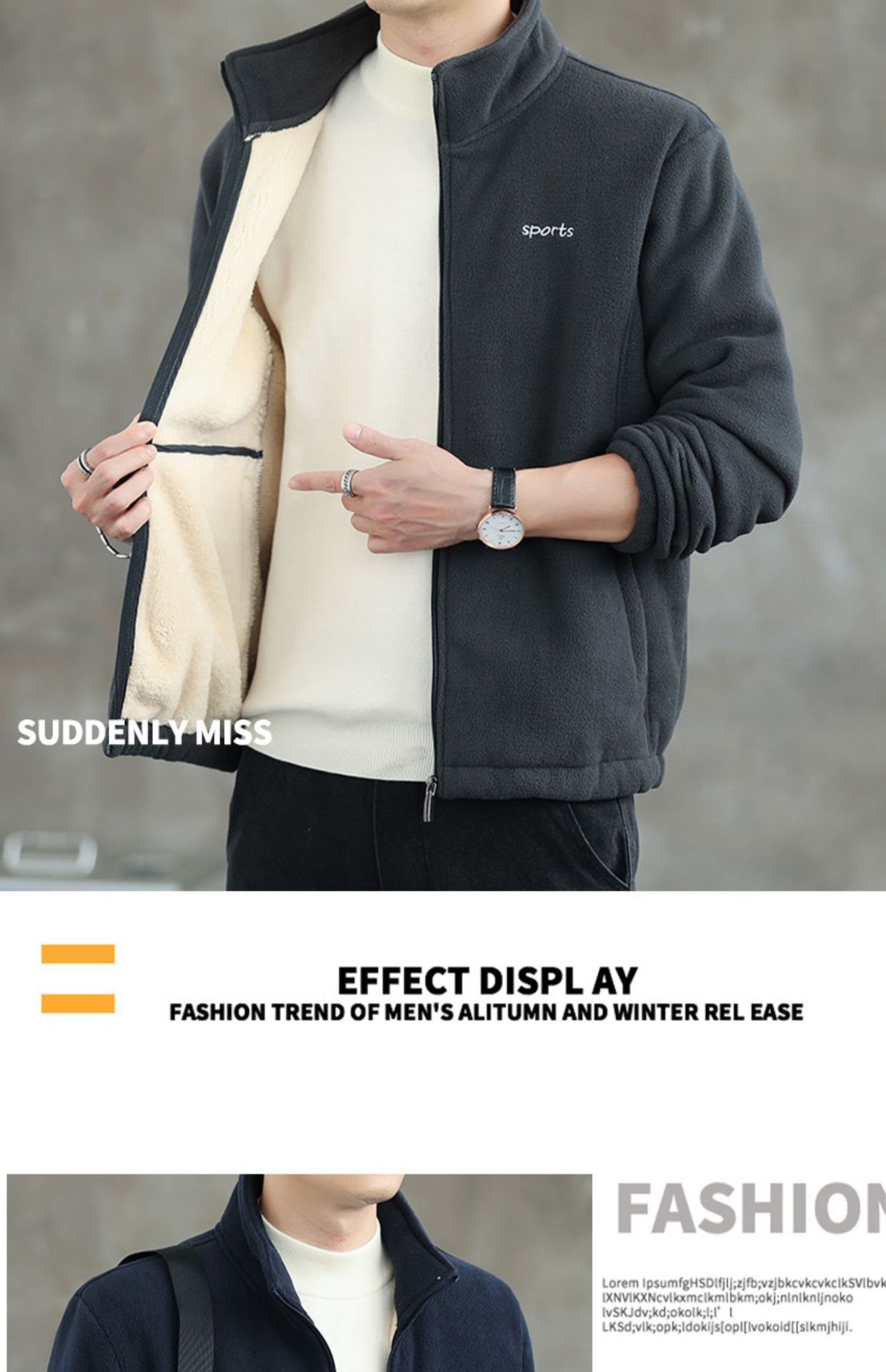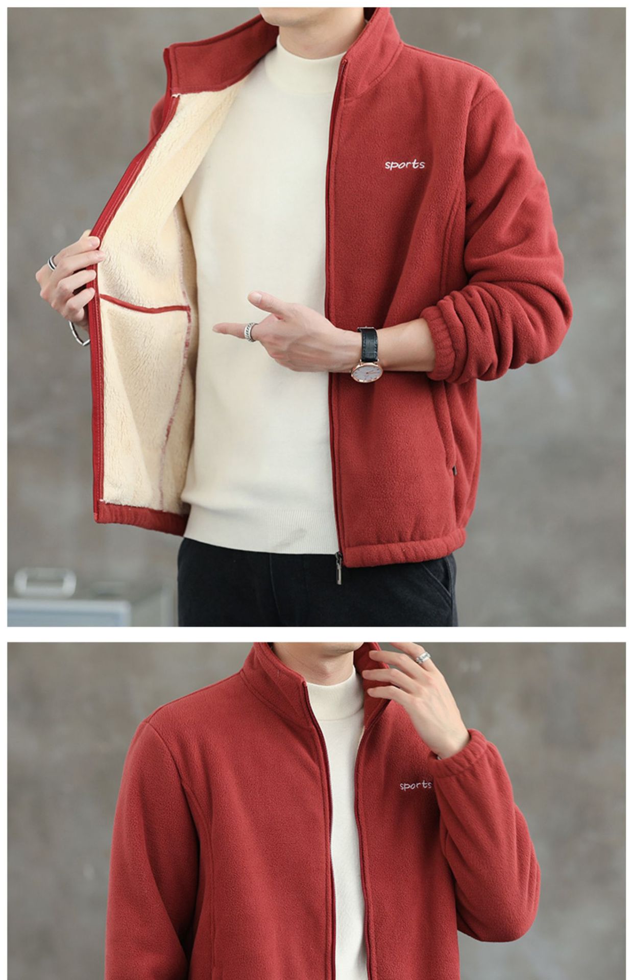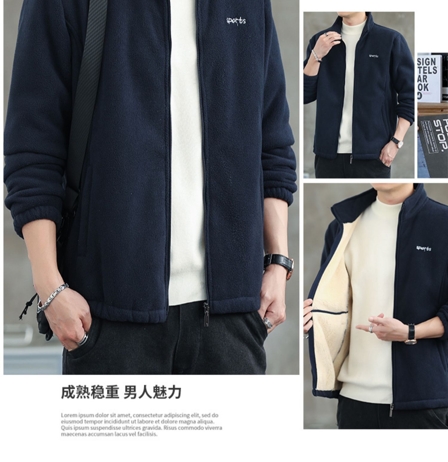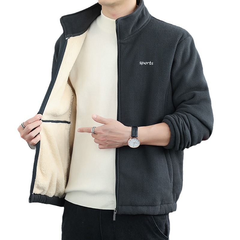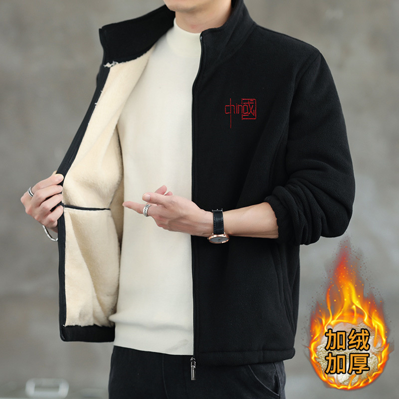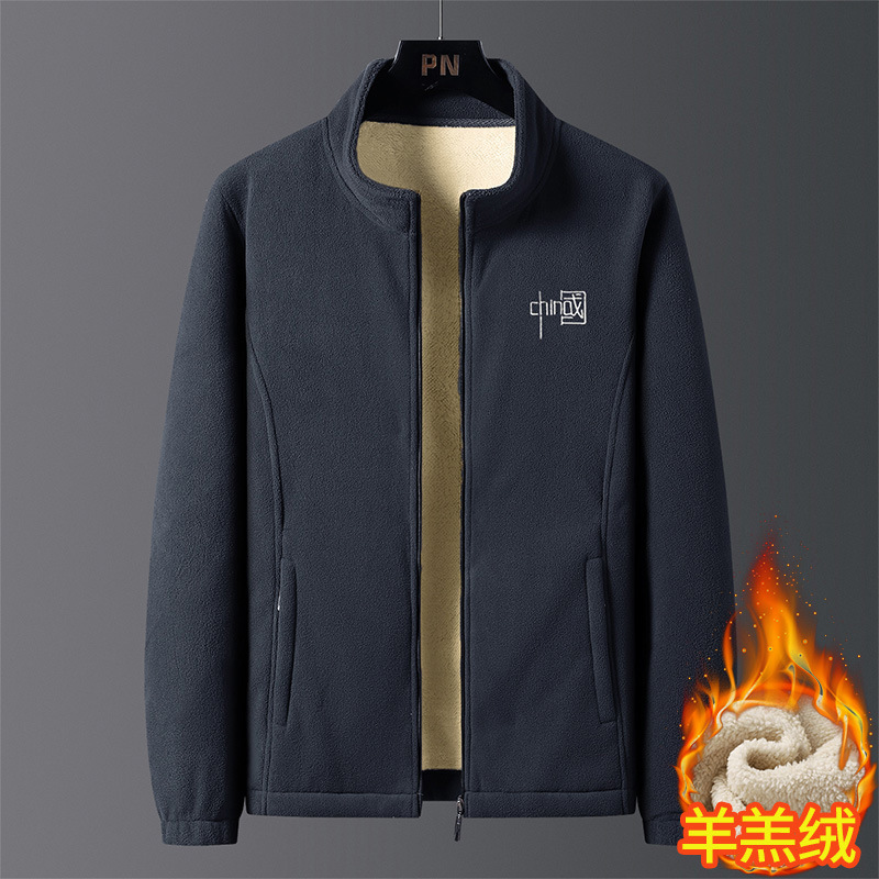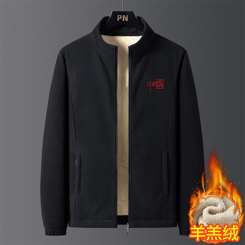 羊羔绒休闲外套男士秋冬季2024新款国潮牌加厚保暖夹克摇粒绒冬装