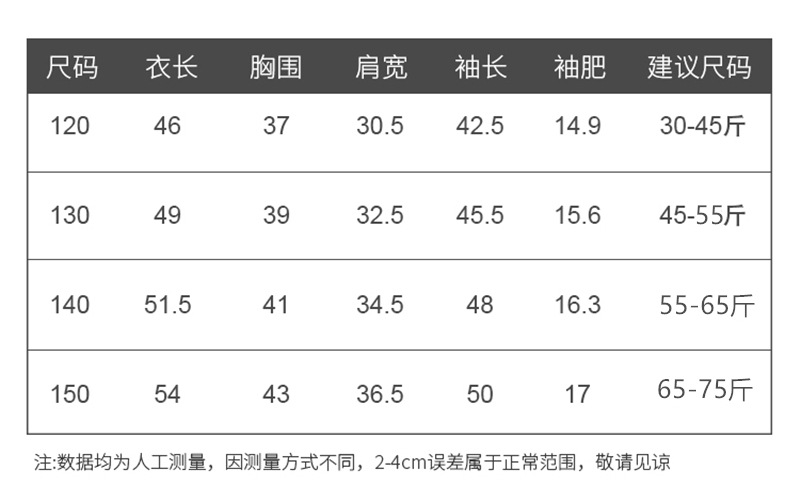 | children 160 [32.50 kg-40.00 kg]](儿童160【65-80斤】) | USD $0.0 | 2498 piece available |