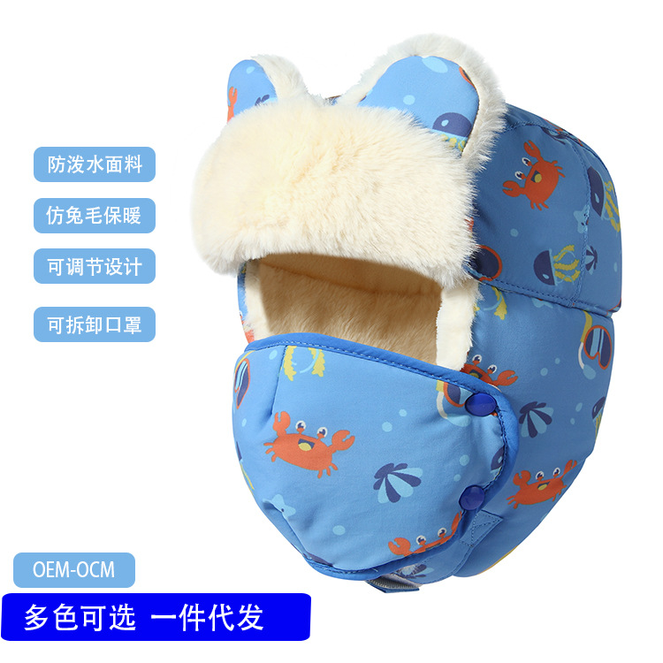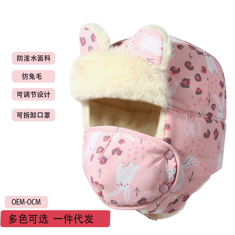 冬季新款儿童可爱兔子雷锋帽户外仿兔毛防寒保暖时尚护耳棉帽子