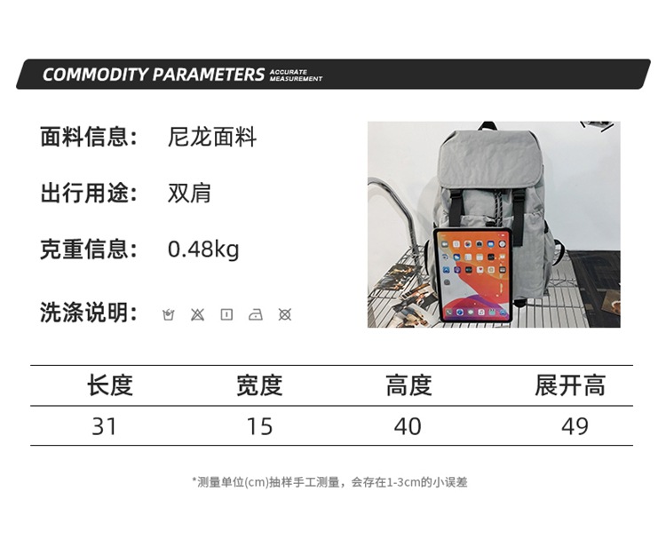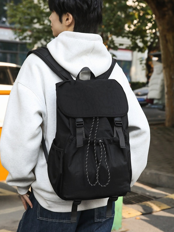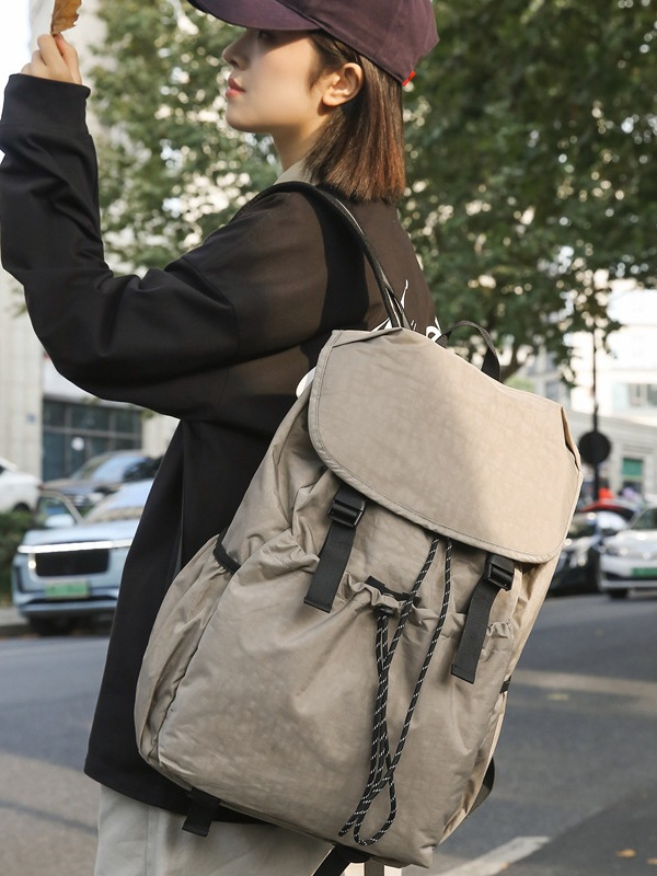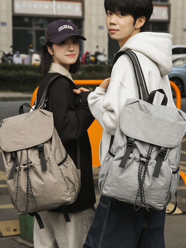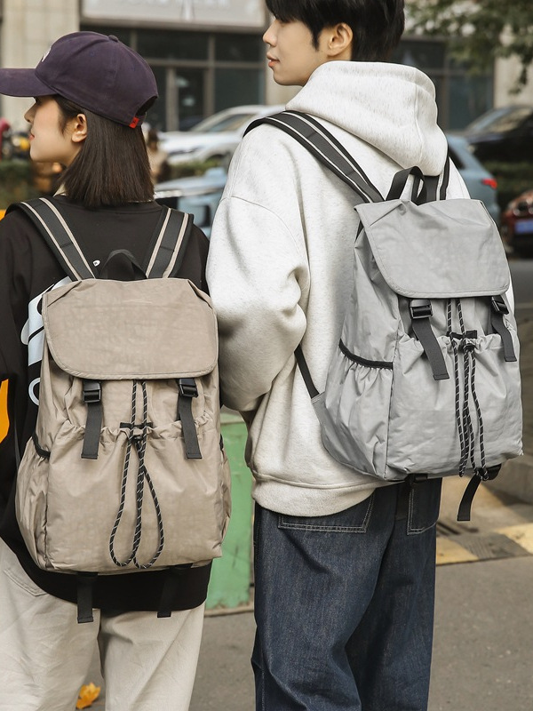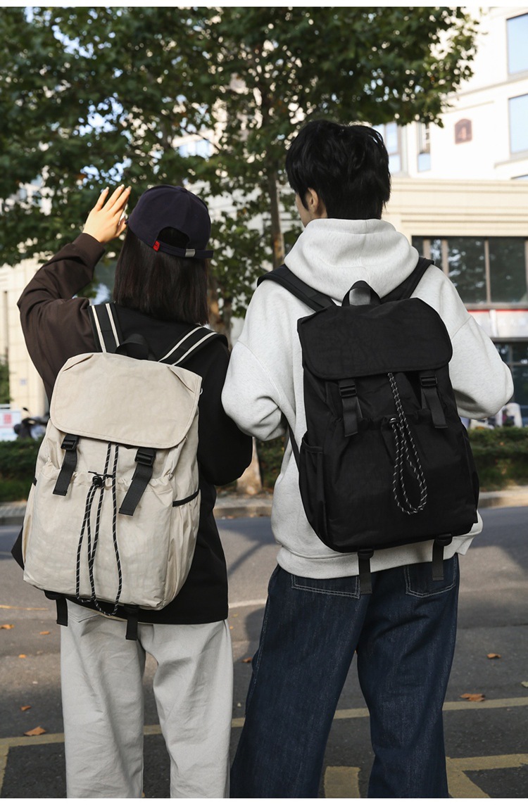 新款男女通勤纯色校园上课超轻尼龙休闲双肩背包
