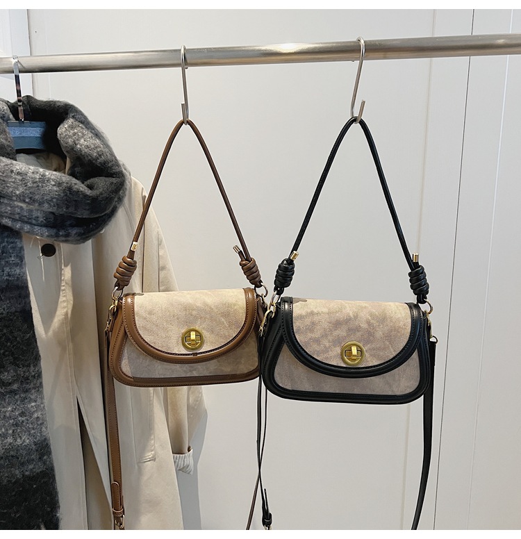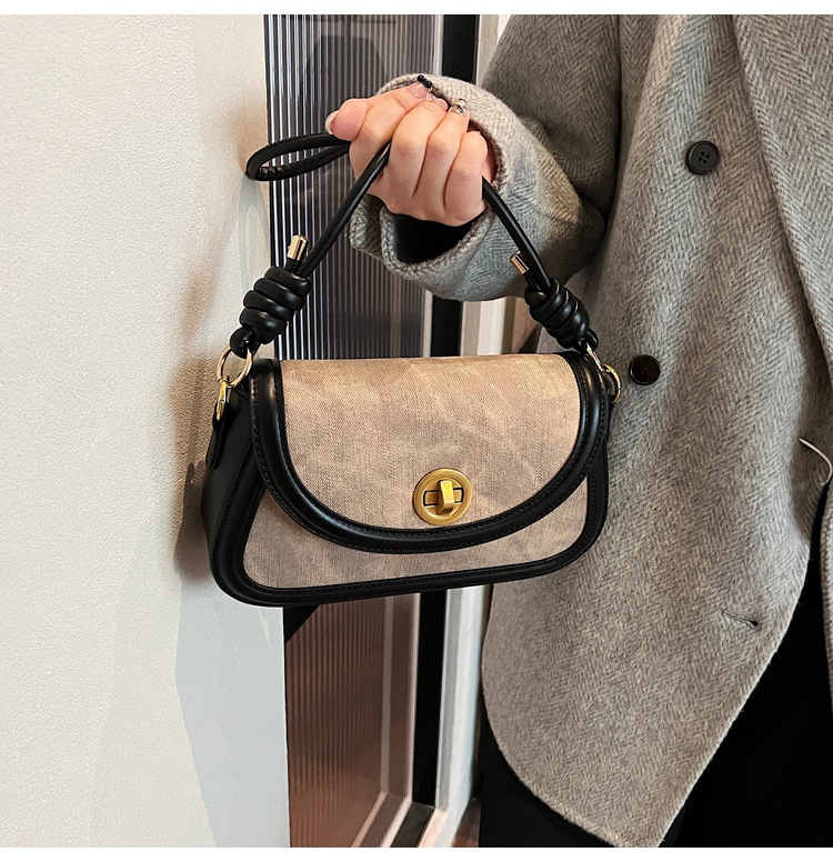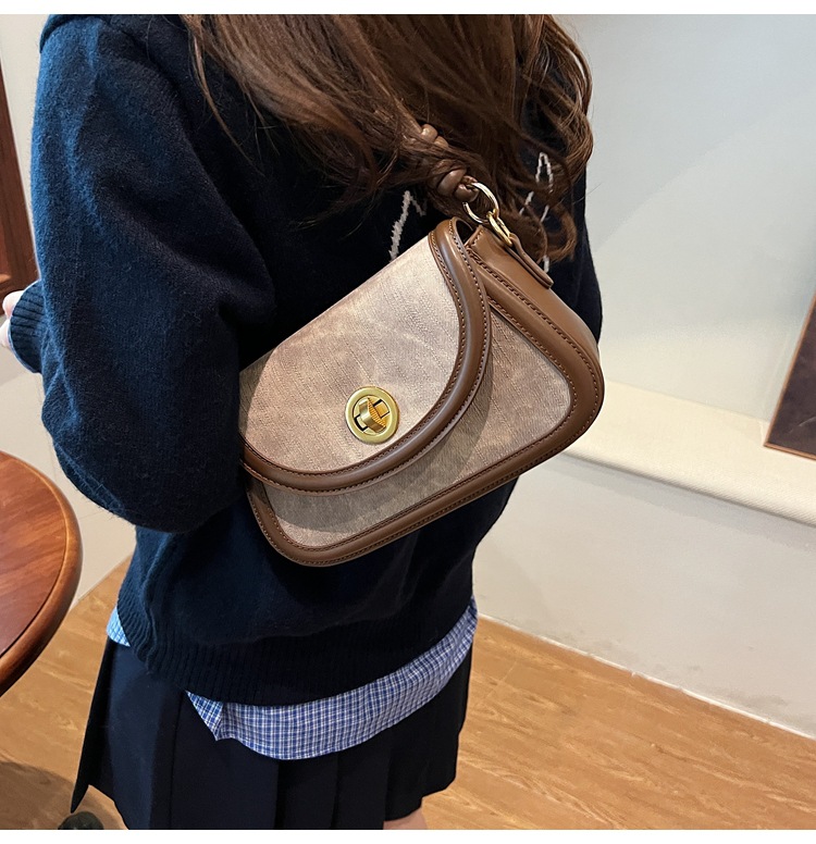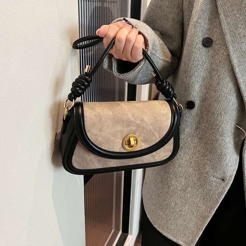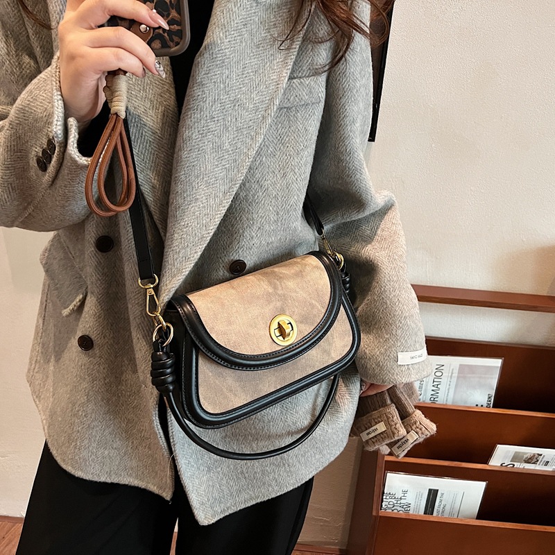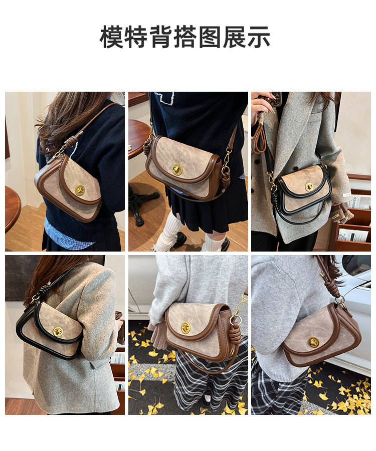 斜挎包2024新款女包小众洋气感单肩包撞色拼接腋下包