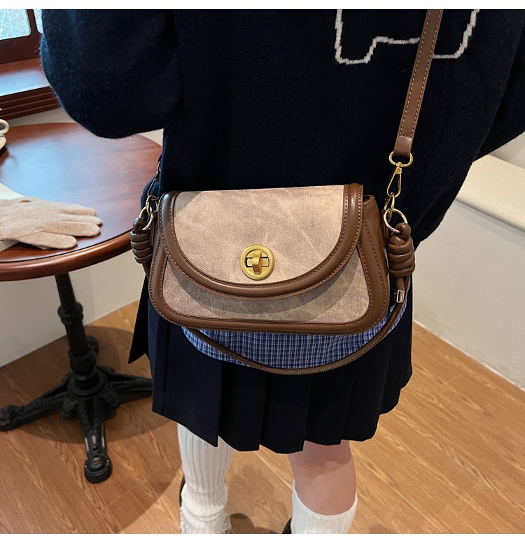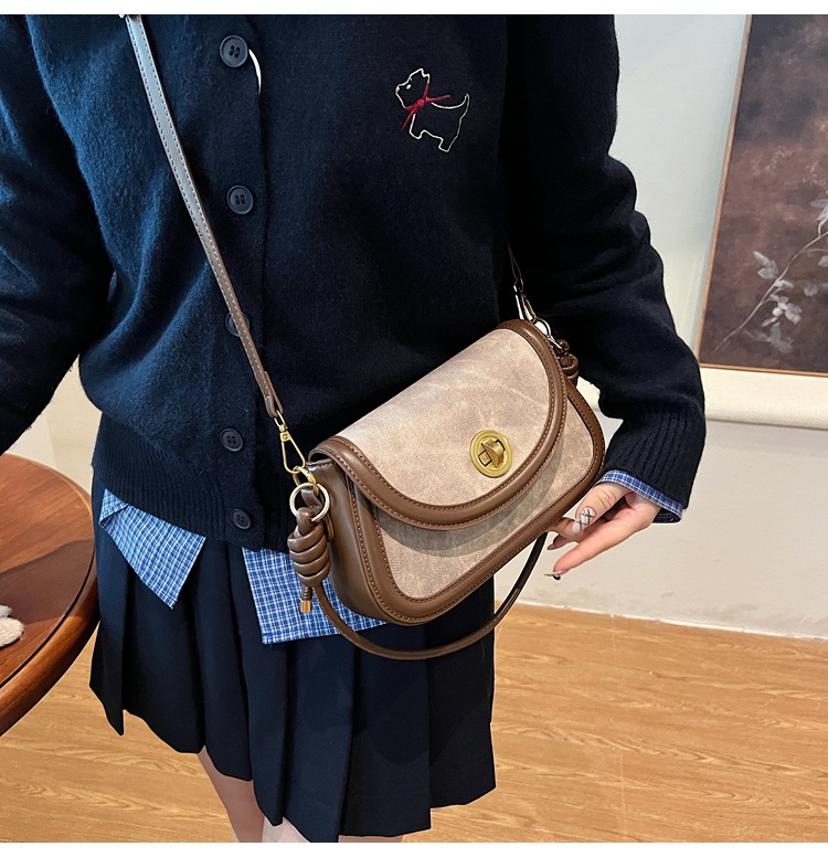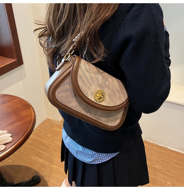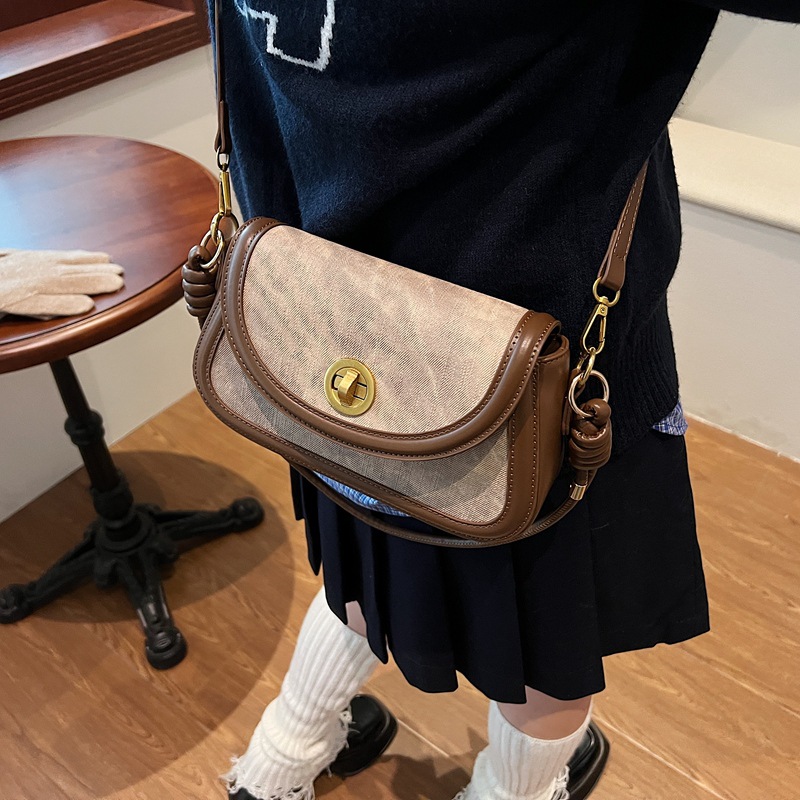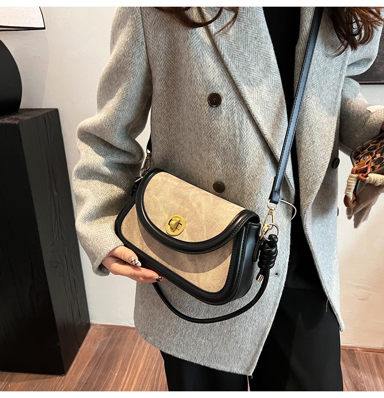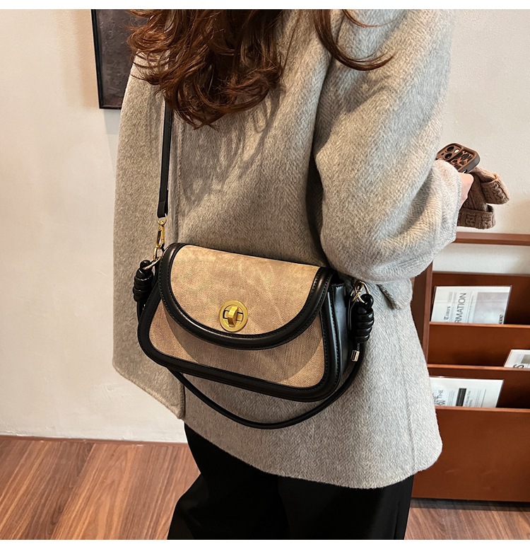 斜挎包2024新款女包小众洋气感单肩包撞色拼接腋下包