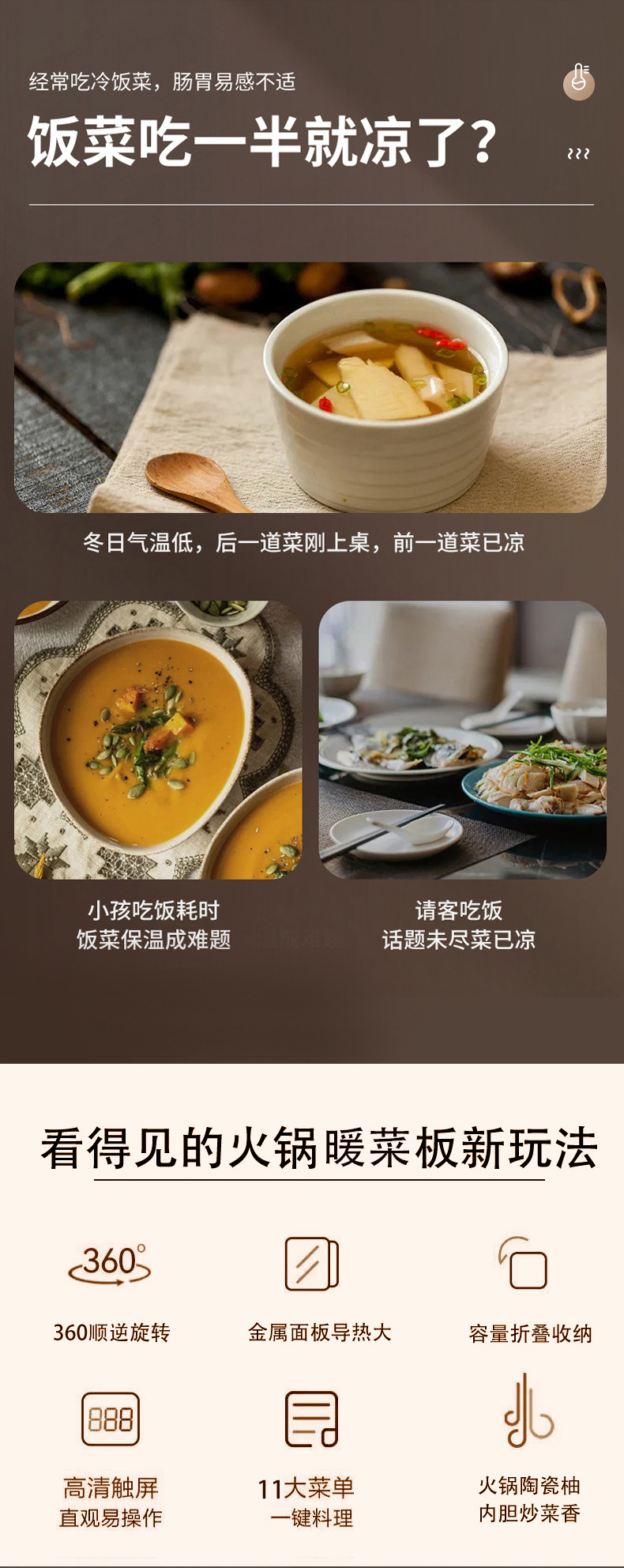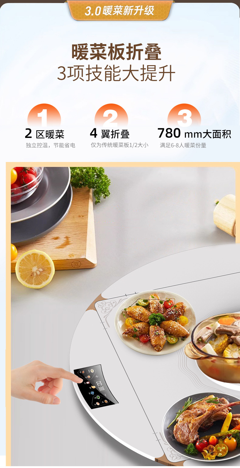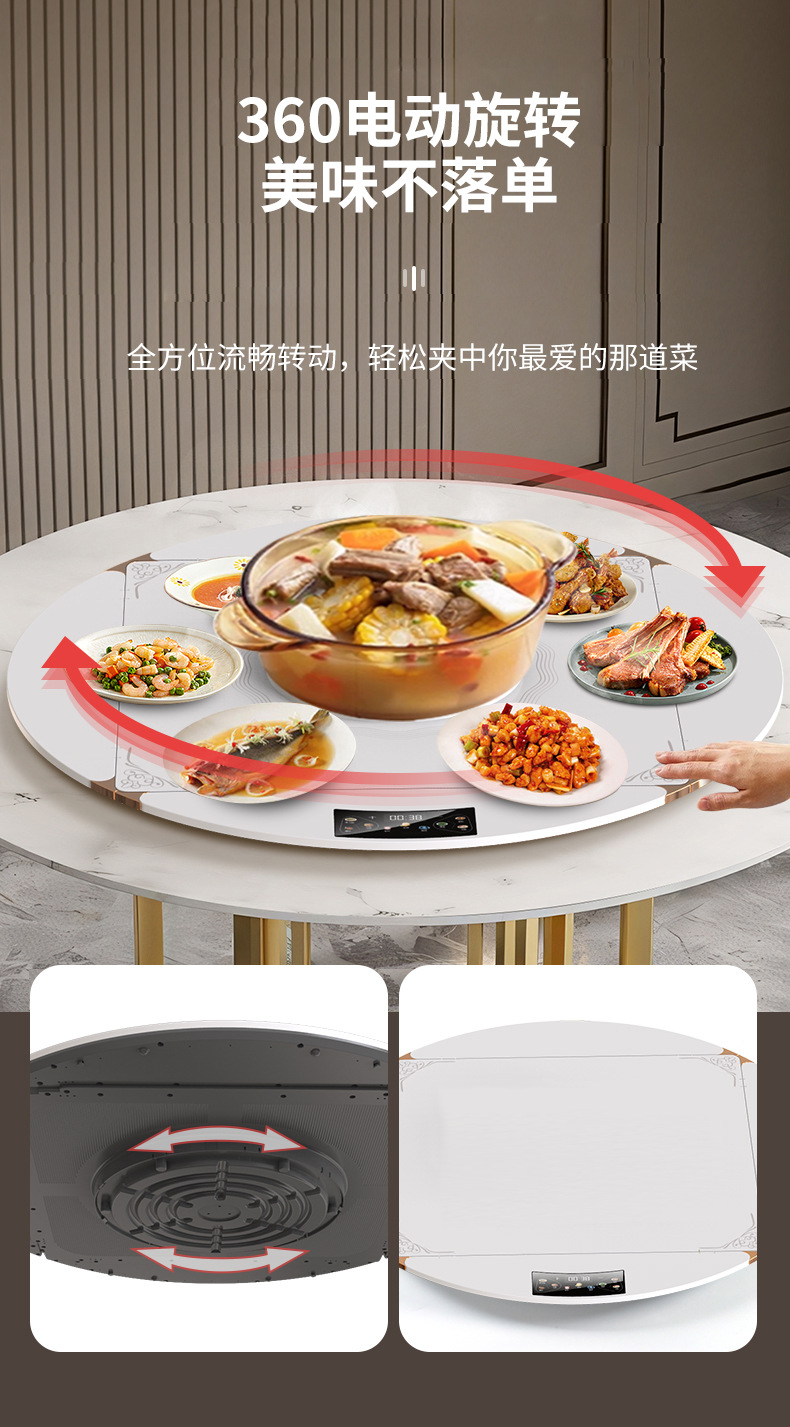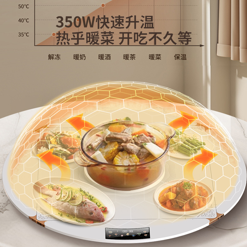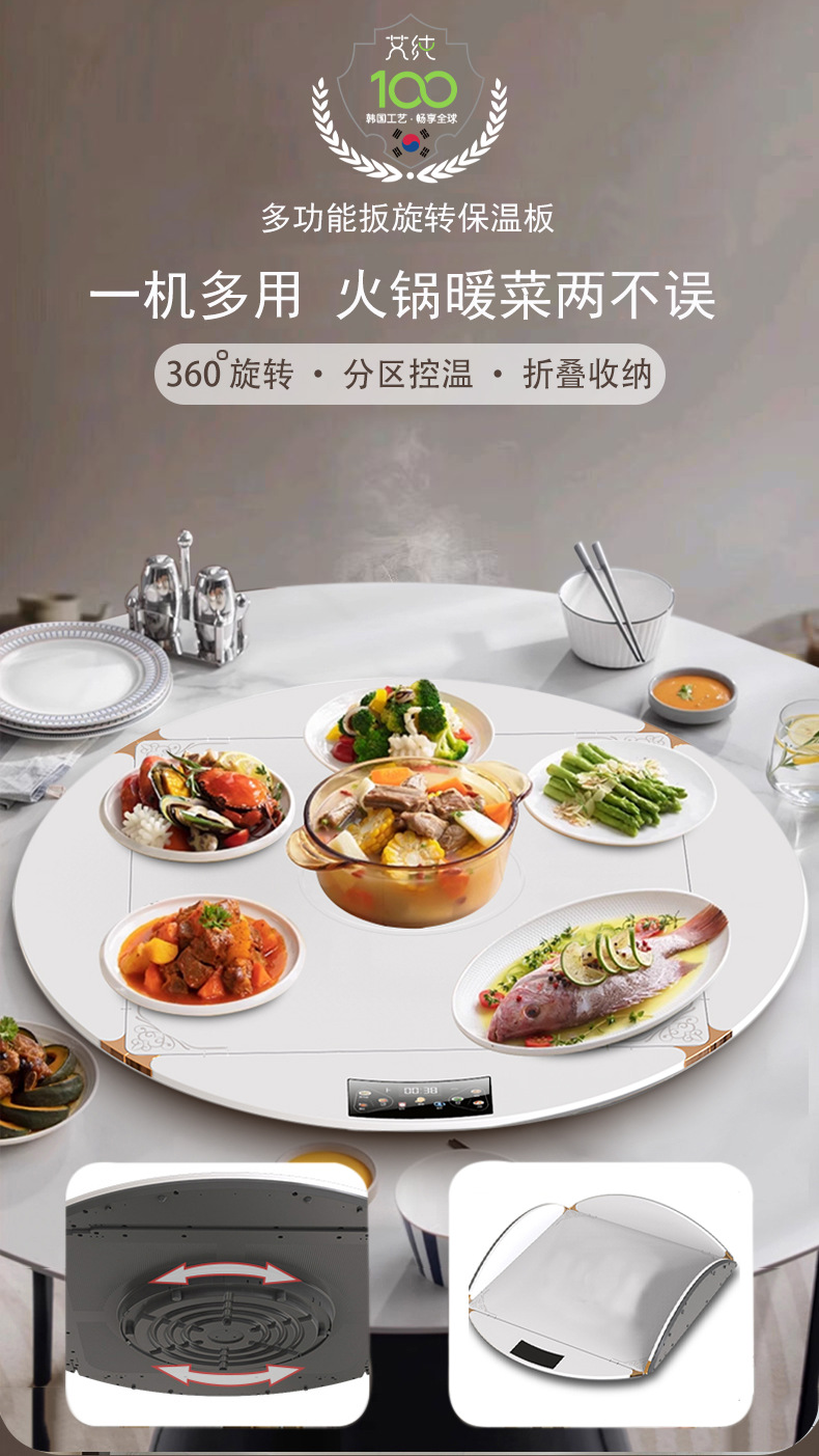 折叠式家用多功能餐桌自动转盘分区圆形暖菜板加热菜板饭菜保温板