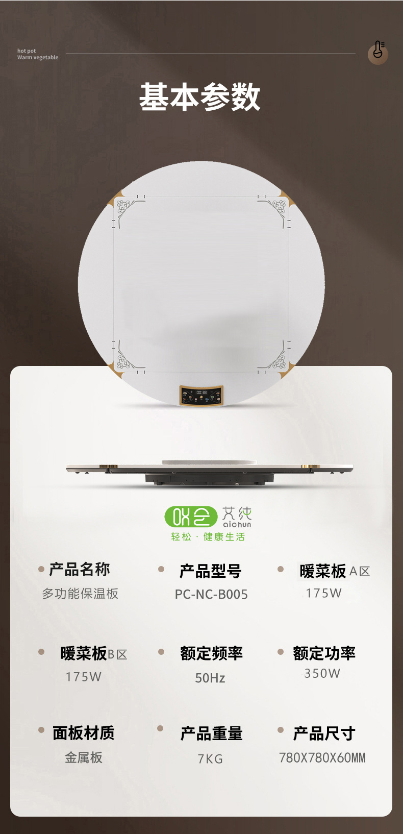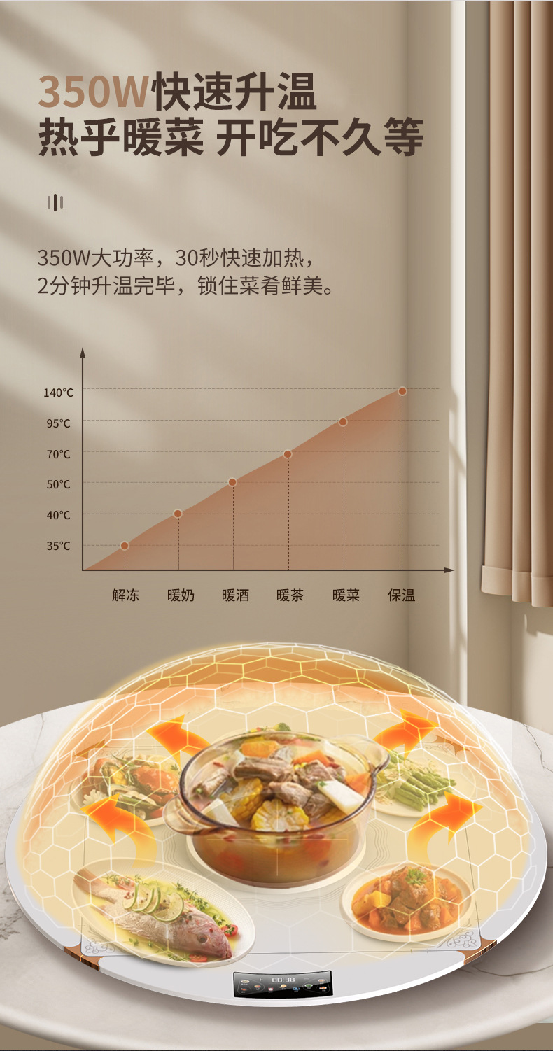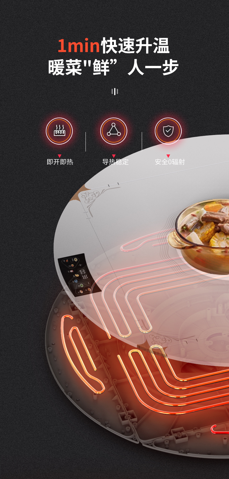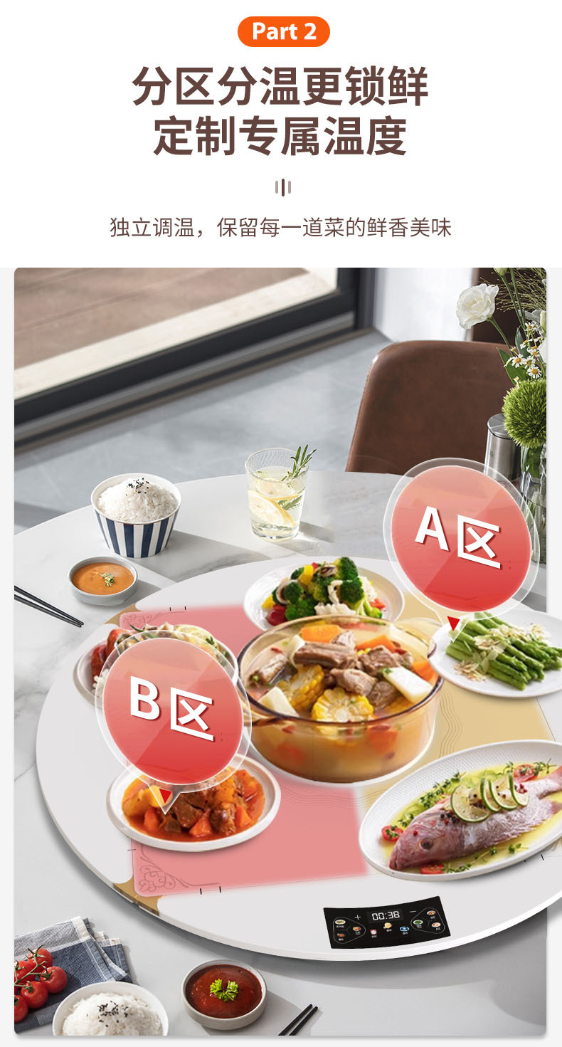 折叠式家用多功能餐桌自动转盘分区圆形暖菜板加热菜板饭菜保温板