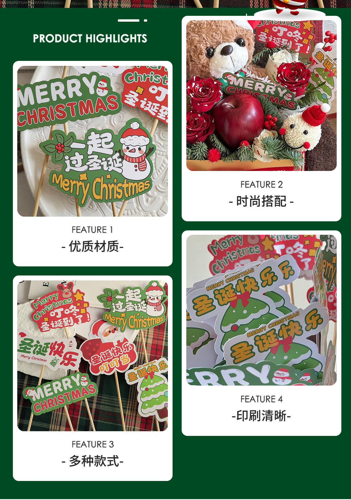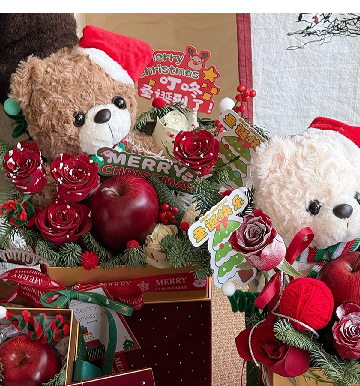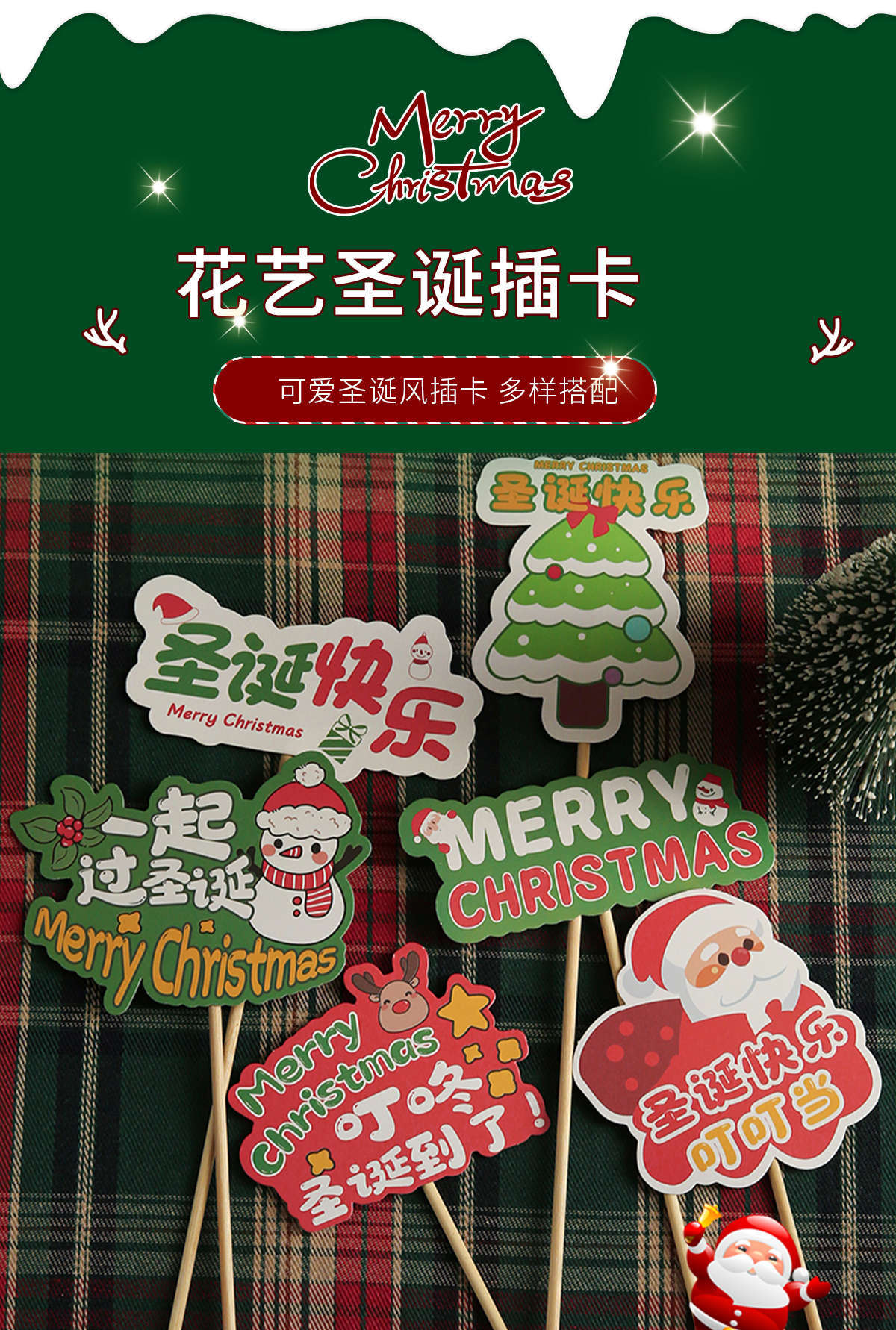 圣诞节礼物装饰吊卡平安夜可爱装扮花束鲜花配件挂卡糖果卡片插卡