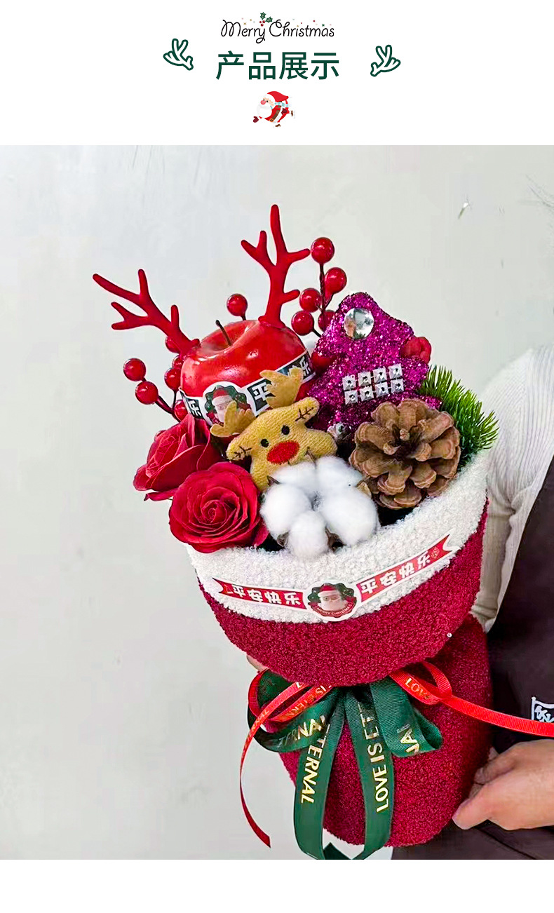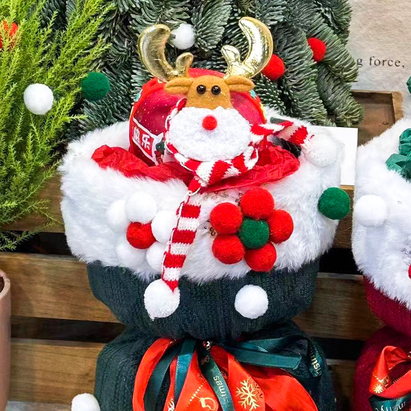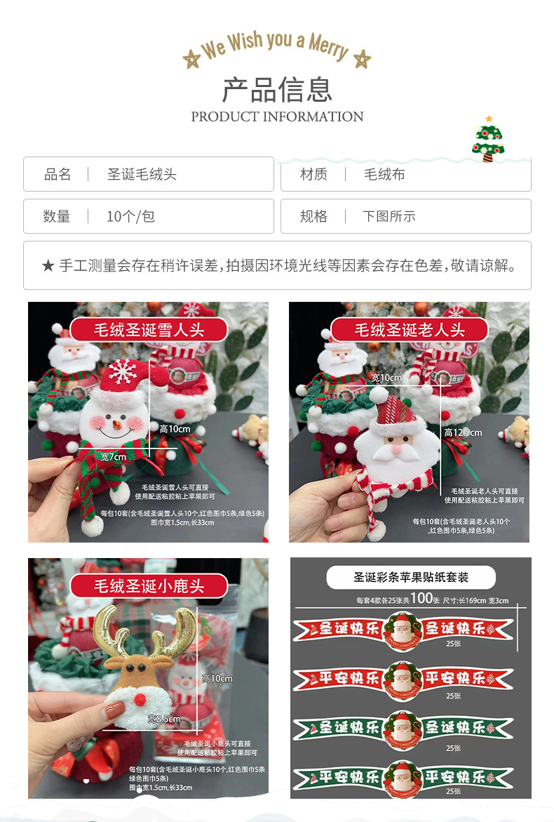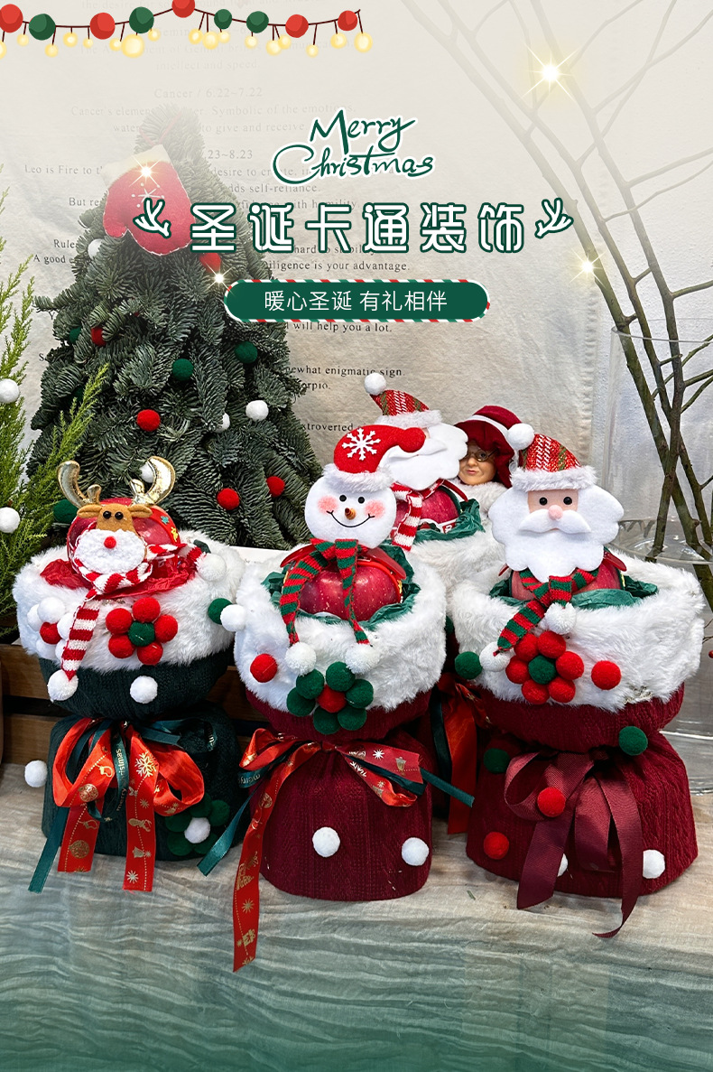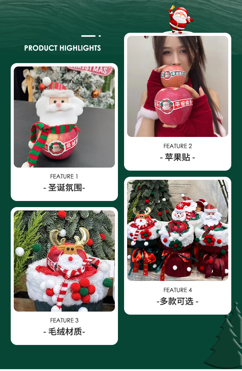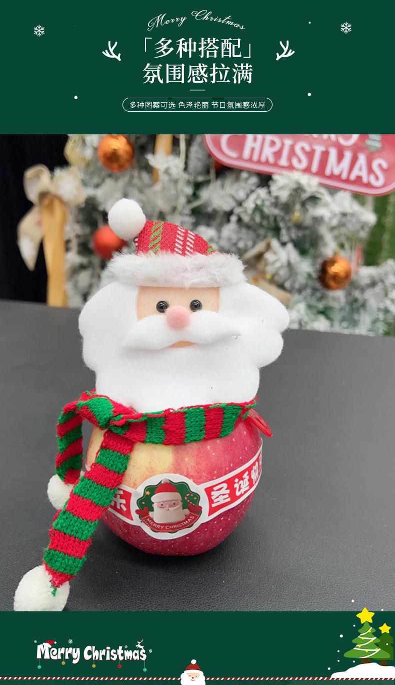 圣诞节苹果包装装饰配件卡通玩偶平安果手工ins毛绒圣诞包装配件