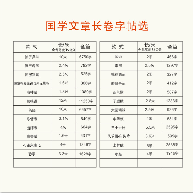 滕王阁序上林赋孔雀东南飞寒窑赋素书正气歌长卷宣纸临摹描红入门