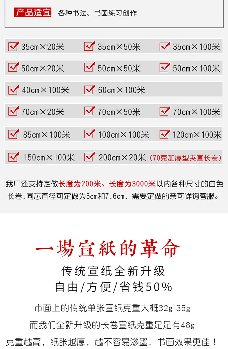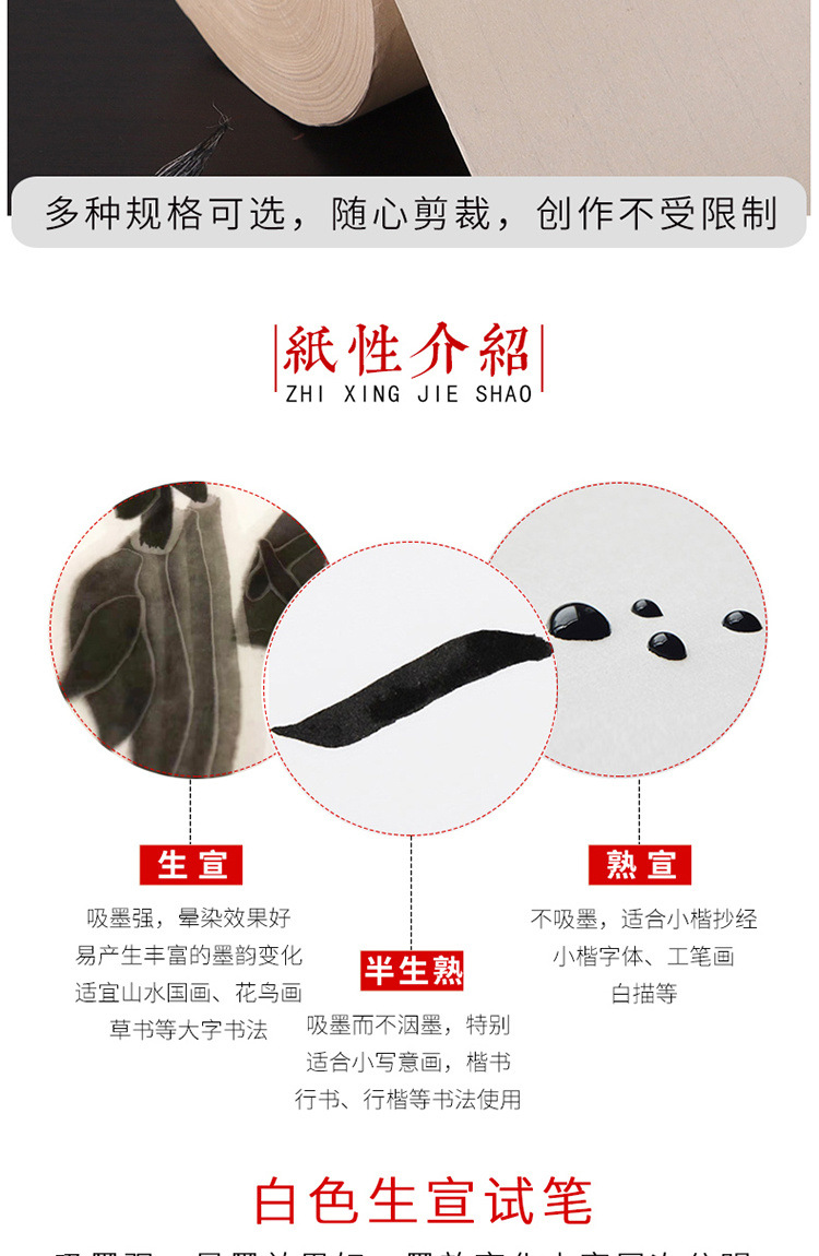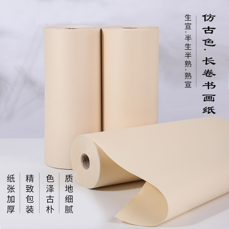 宣纸加厚长卷白色生宣仿古色半生半熟毛笔字书法宽35厘米