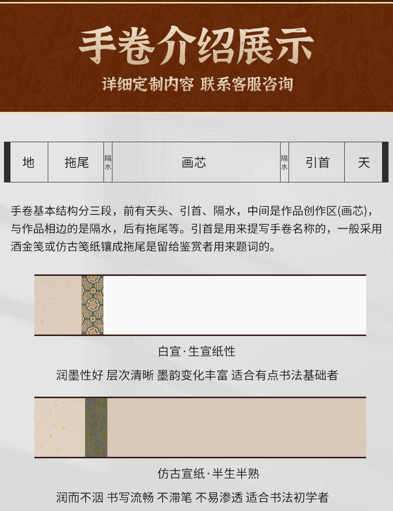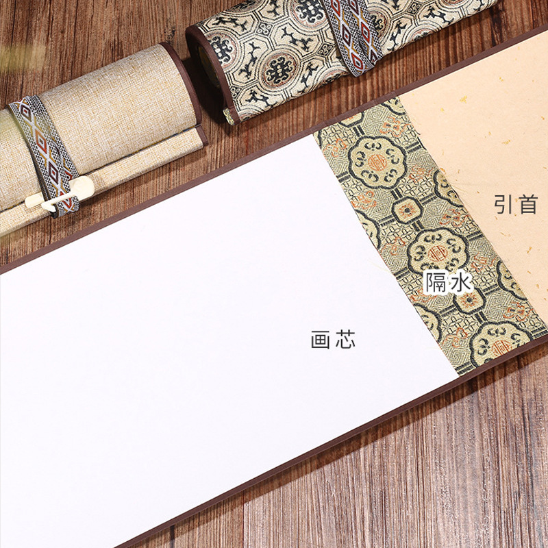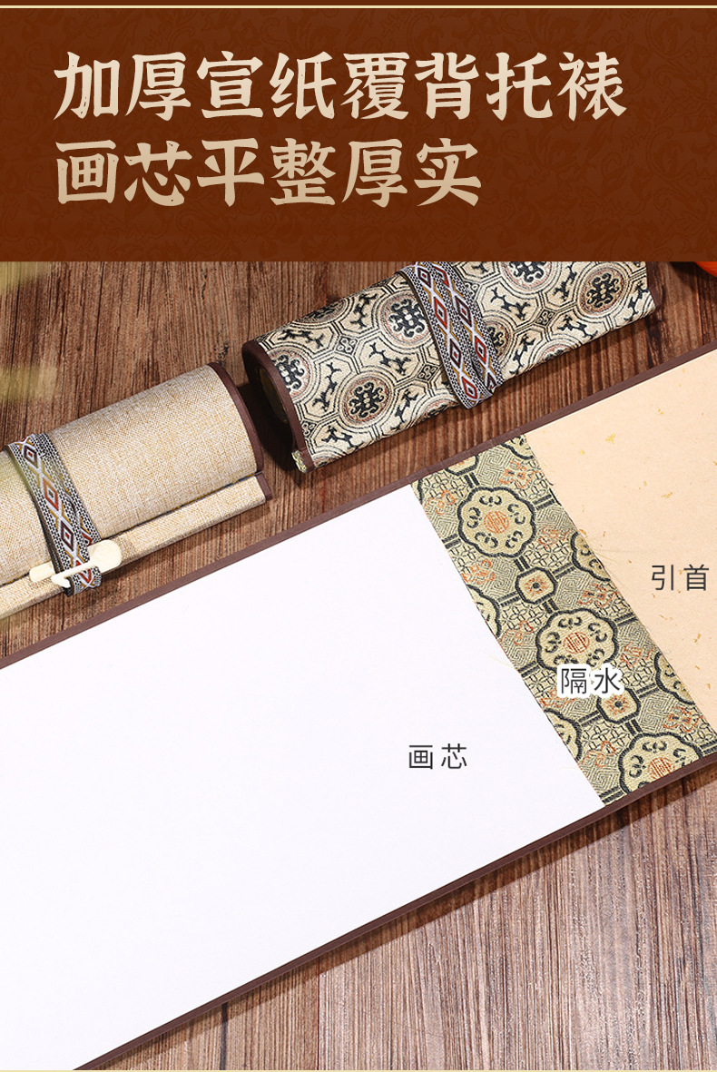 宋锦手卷长卷卷轴空白绫布卷轴国风宣纸挂轴书法绘画加复古长卷轴