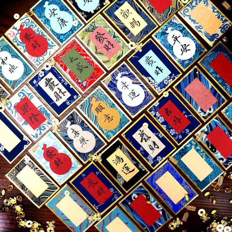 宛陵宋锦硬卡纸迷你国风宣纸文创礼品金边硬卡手写书法卡片摆台锦