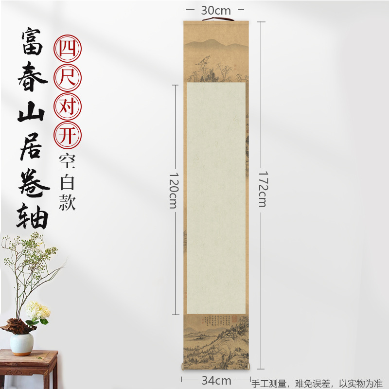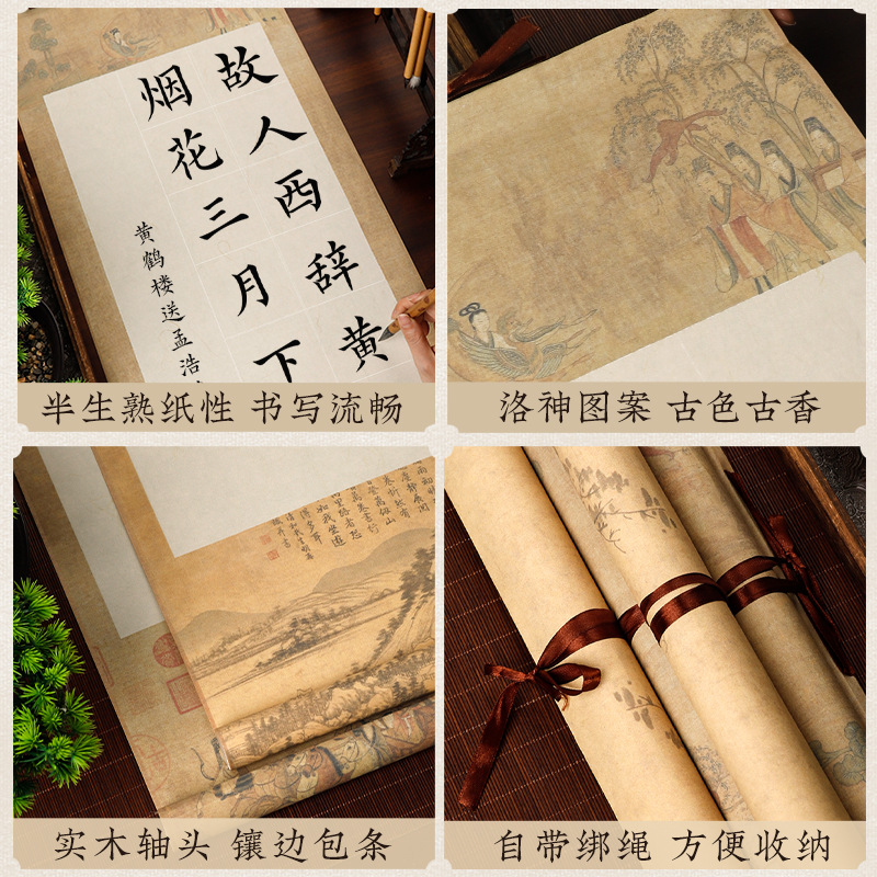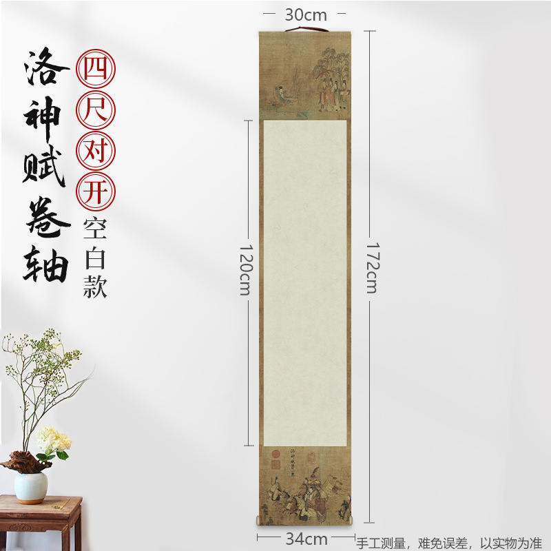 洛神赋/富春山居图微喷蜡染卷轴宣纸空白挂轴禅意书法创作书房挂