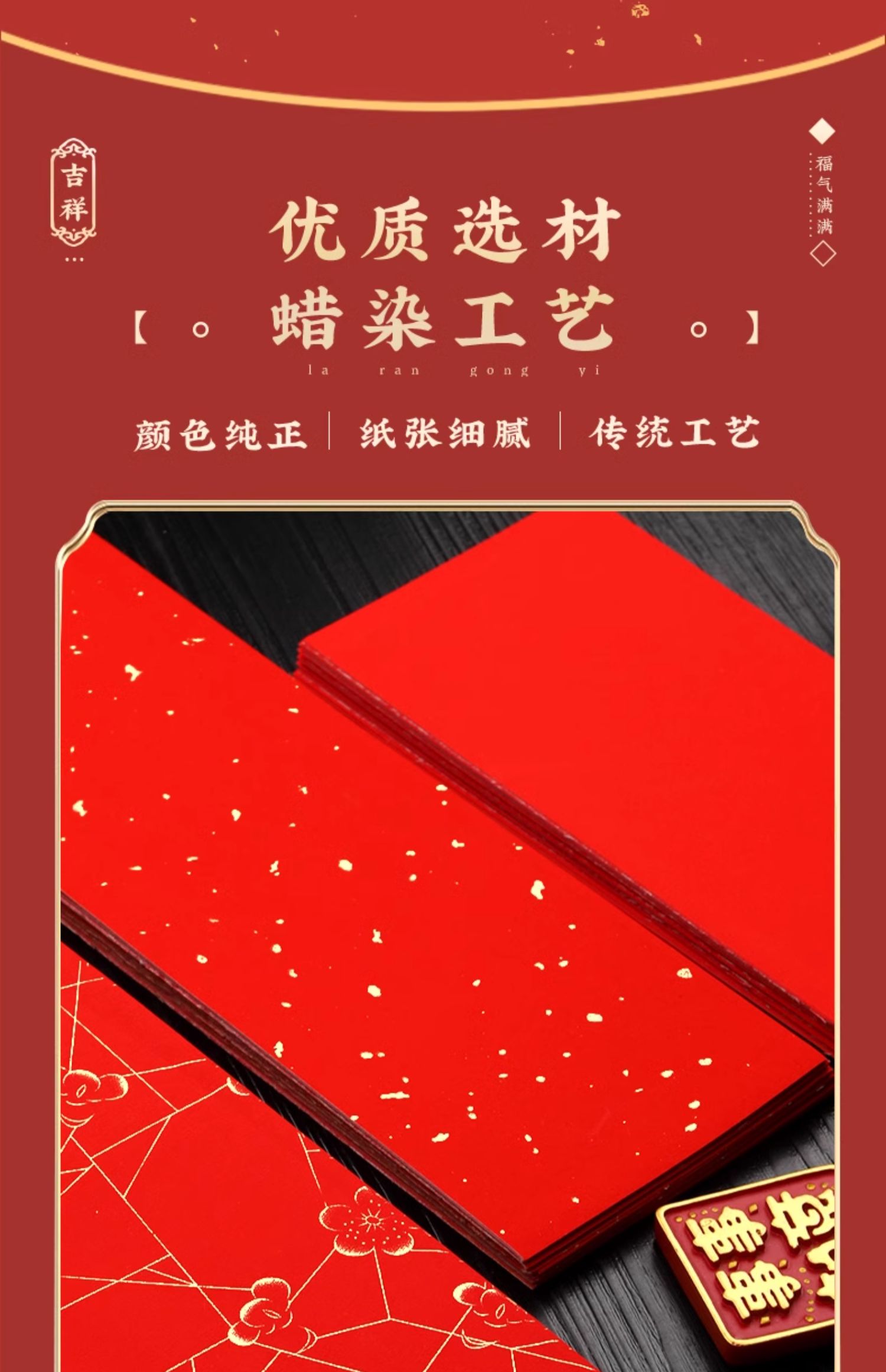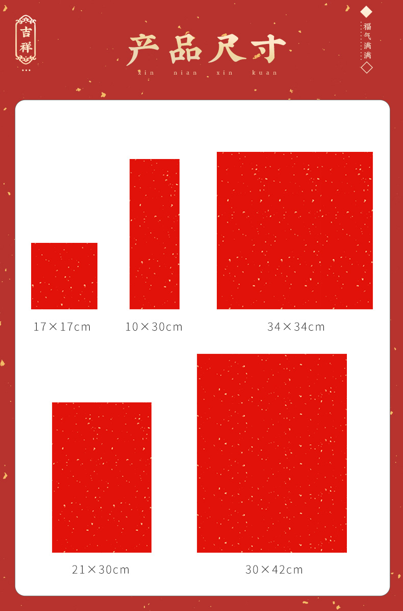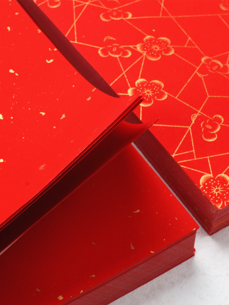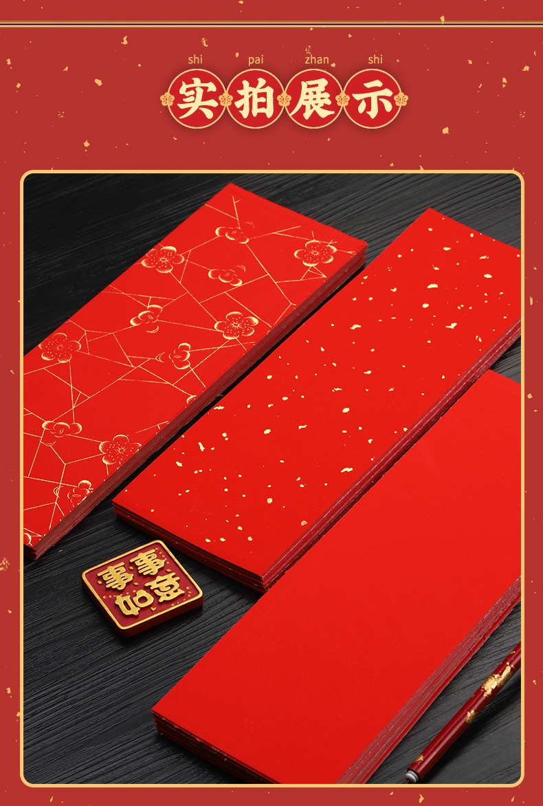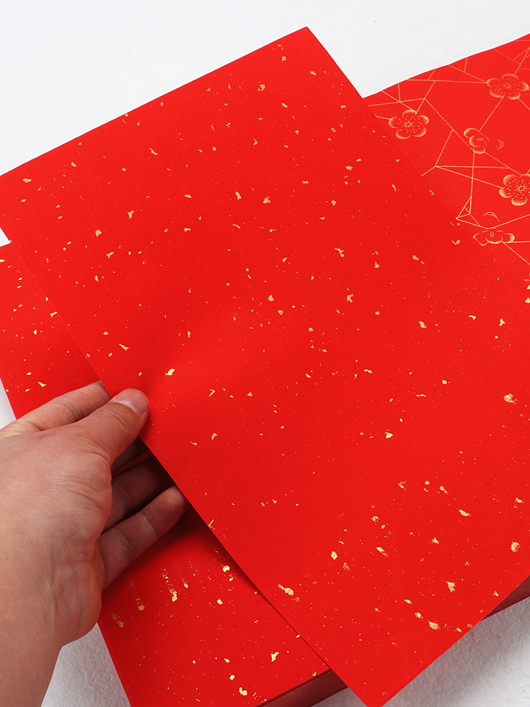 宛陵加厚万年红洒金宣纸挥春空白小对联纸写婚书剪纸专用A4A3大红
