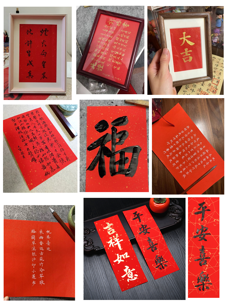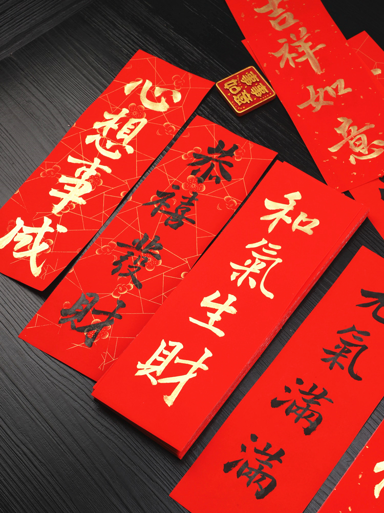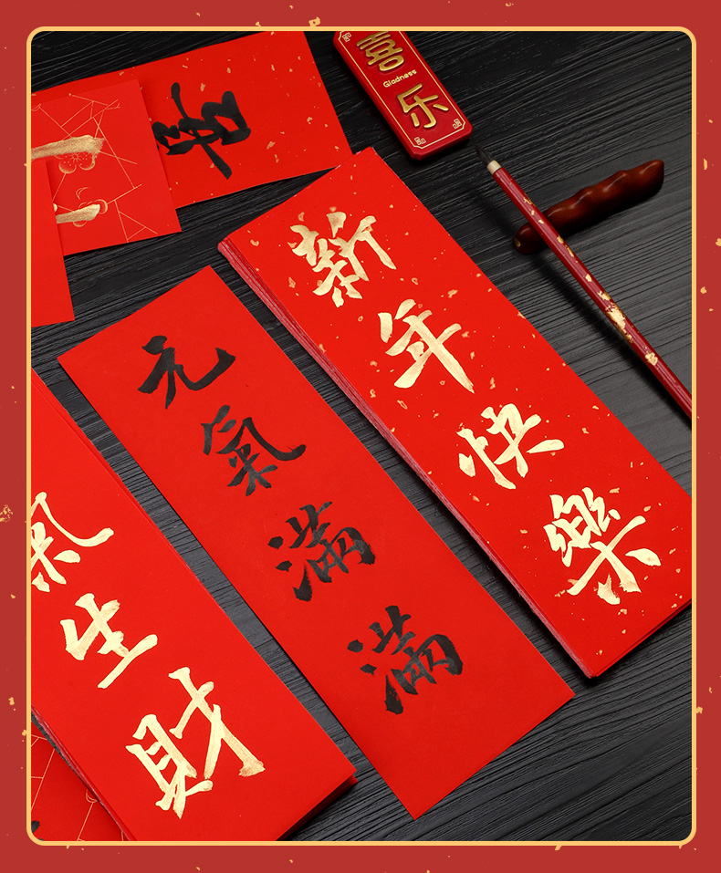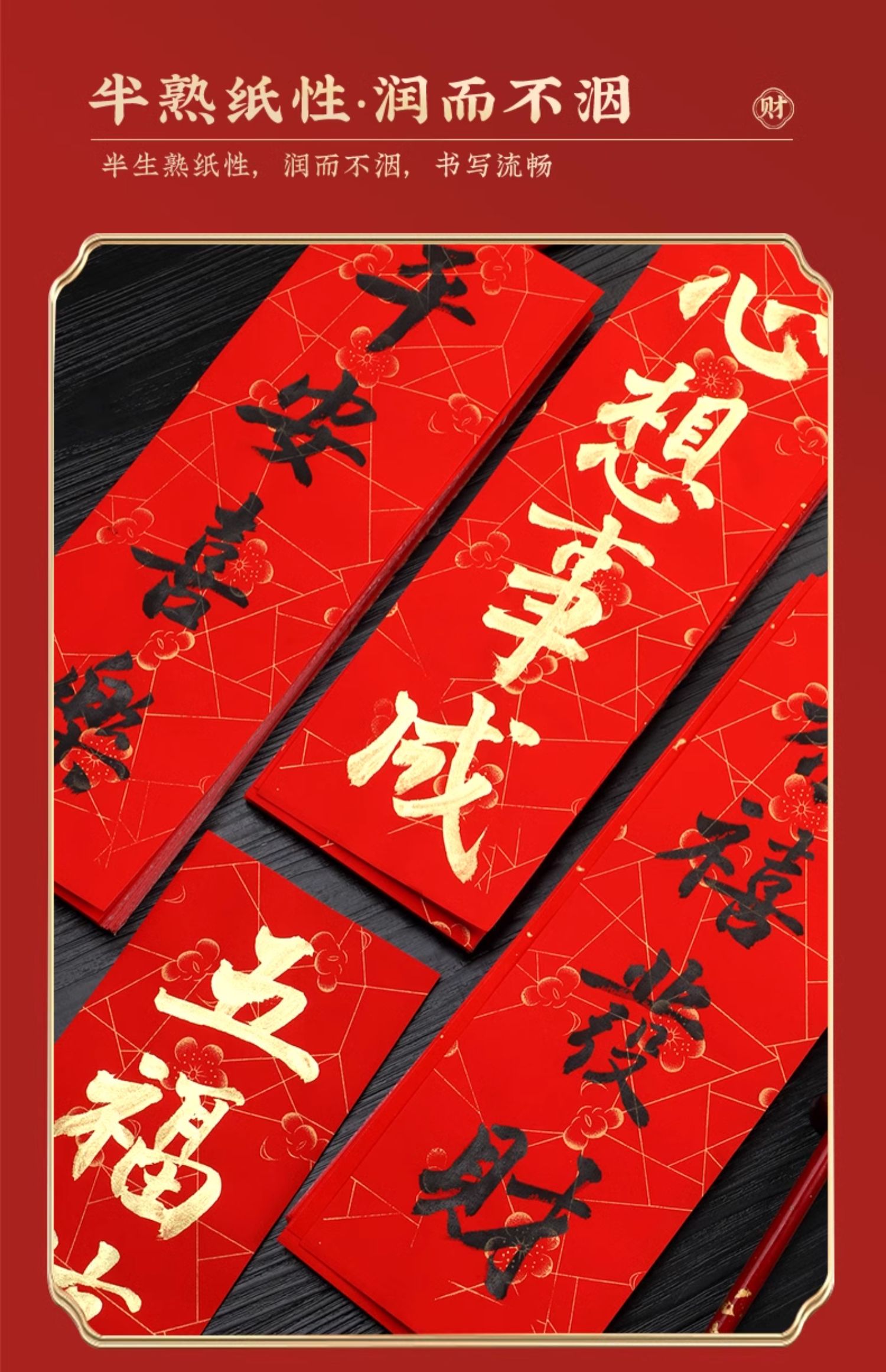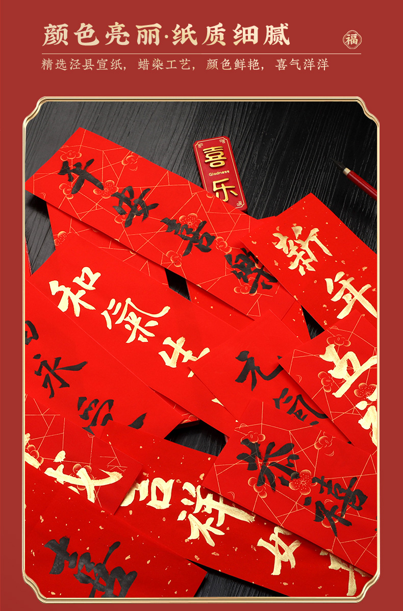 宛陵加厚万年红洒金宣纸挥春空白小对联纸写婚书剪纸专用A4A3大红