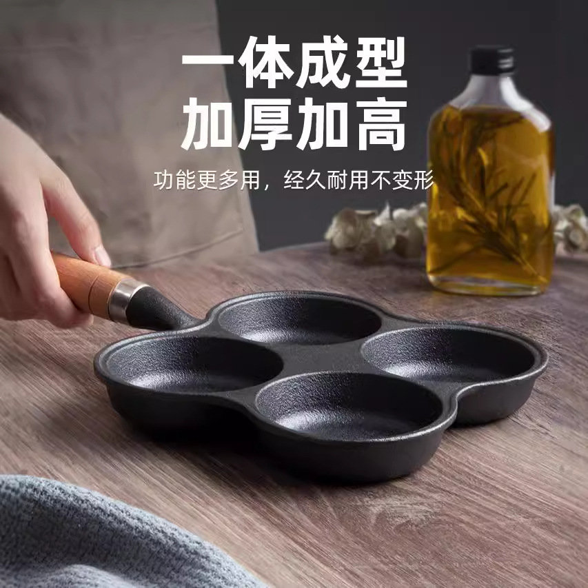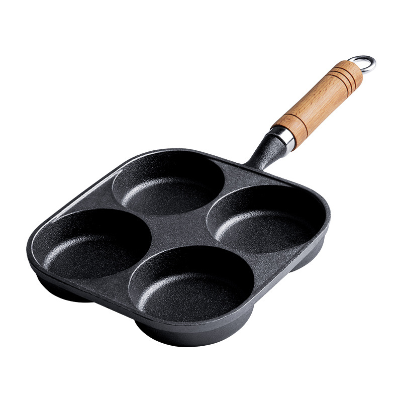 外贸出口鸡蛋汉堡锅平底锅四孔不粘锅铸铁煎锅厨房家用锅具批发