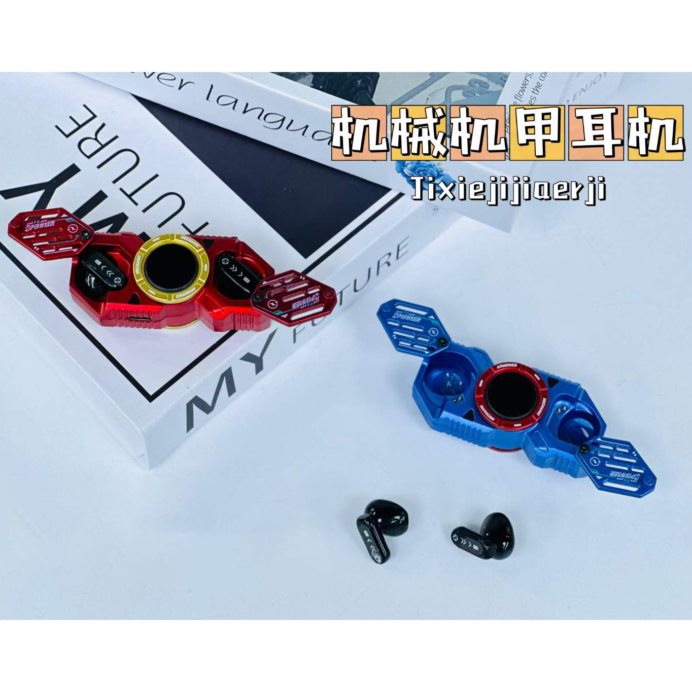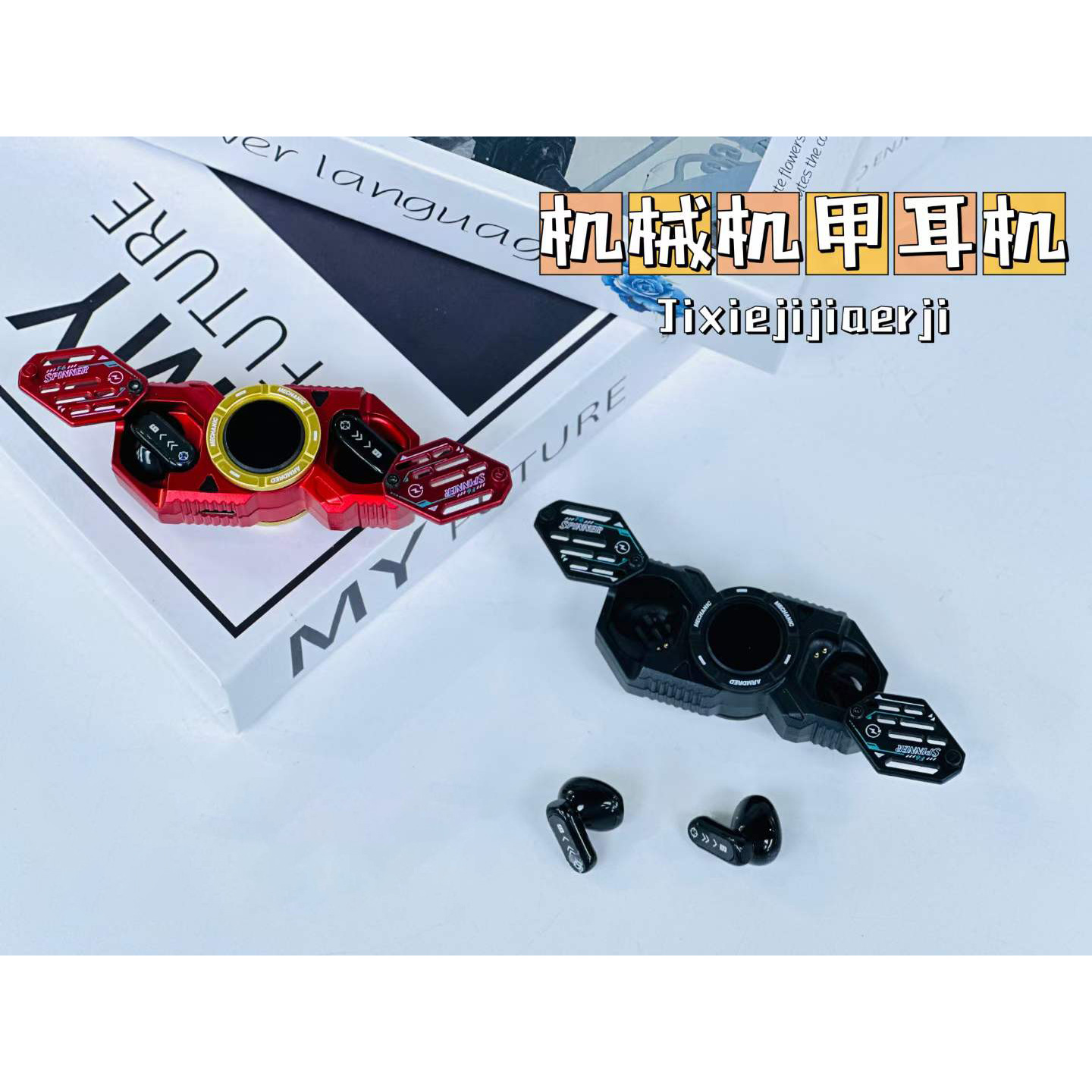 F6新款蓝牙耳机金属机械机甲炫酷无线游戏耳机无延迟360°旋转潮玩