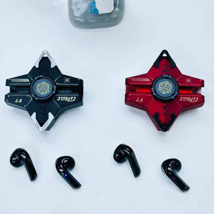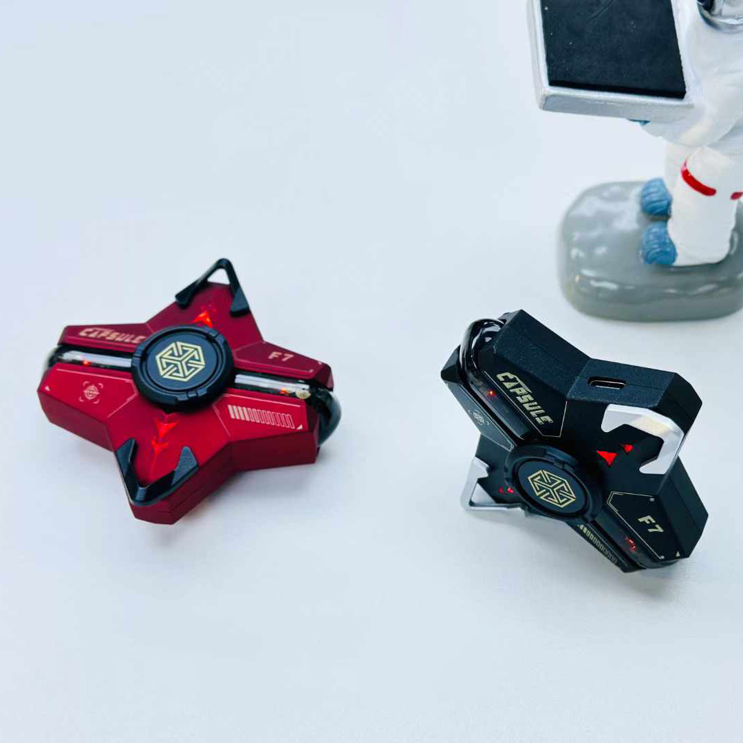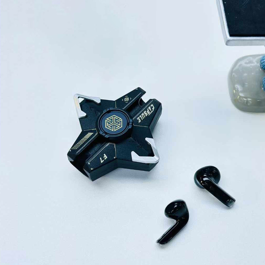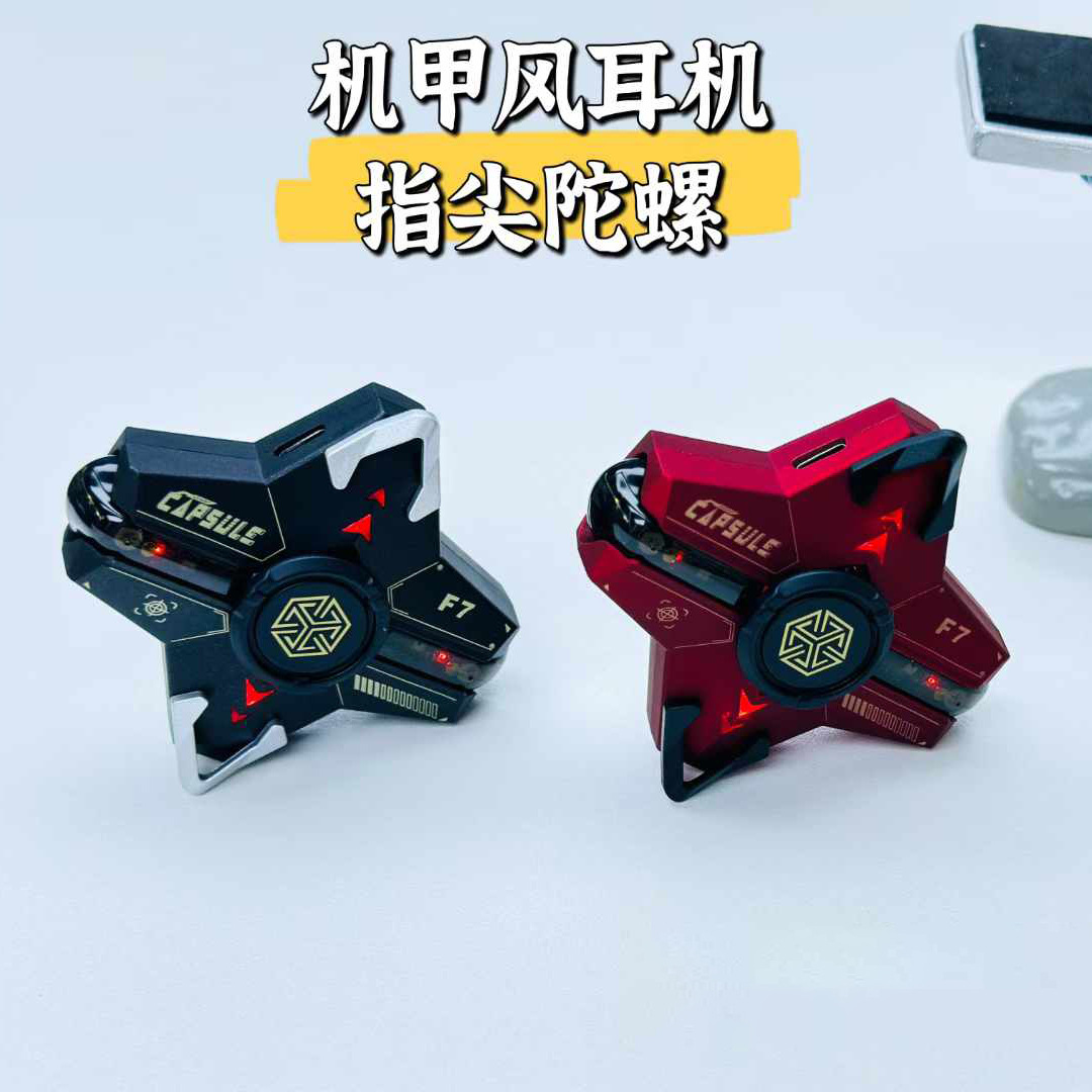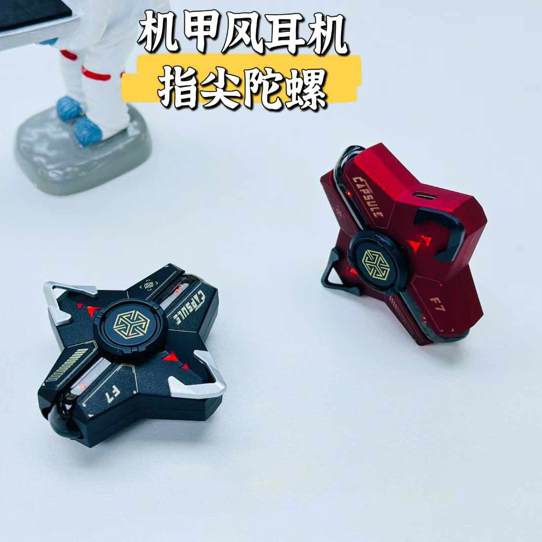 F7 跨境款机甲风陀螺续航锌合金创意解压指尖陀螺5.3电竞蓝牙耳机