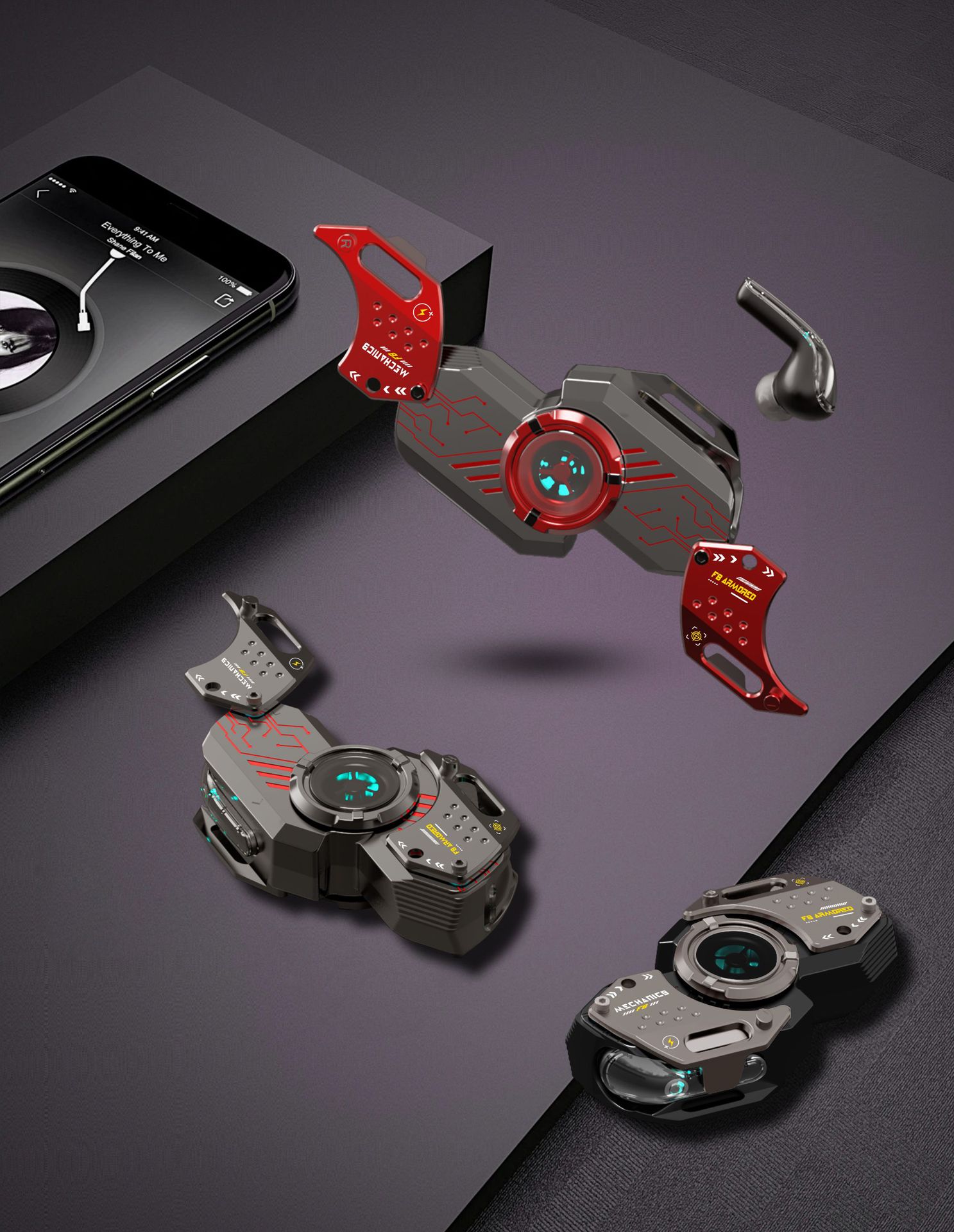 跨境新款F8蓝牙无线耳机降噪tws5.3数显电竞机甲风游戏耳机工厂店