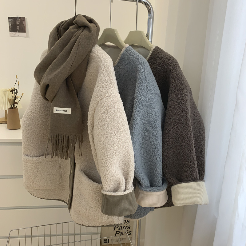 小香风羊羔毛外套女秋冬季高级感小个子加厚摇粒绒羊羔绒毛绒棉服