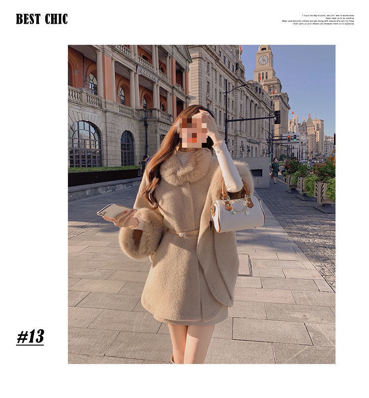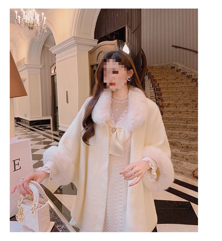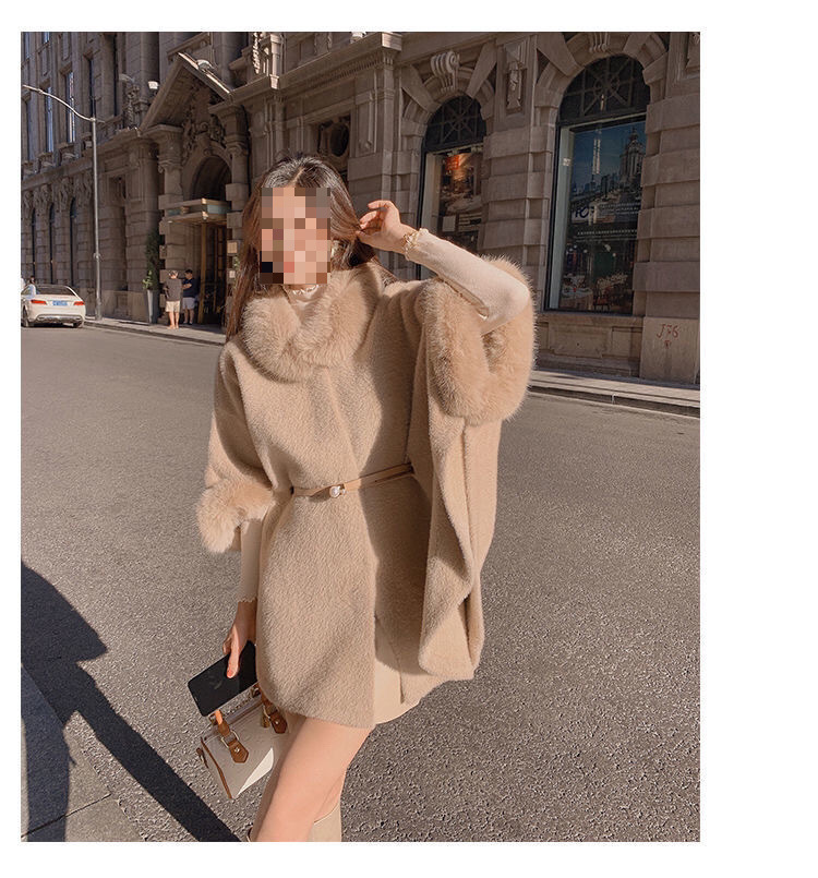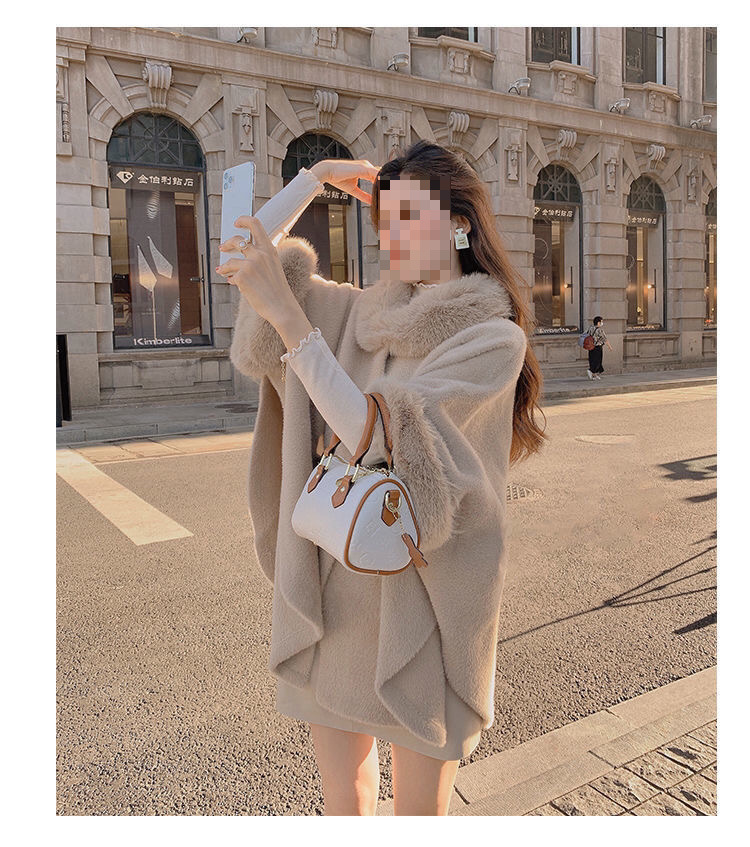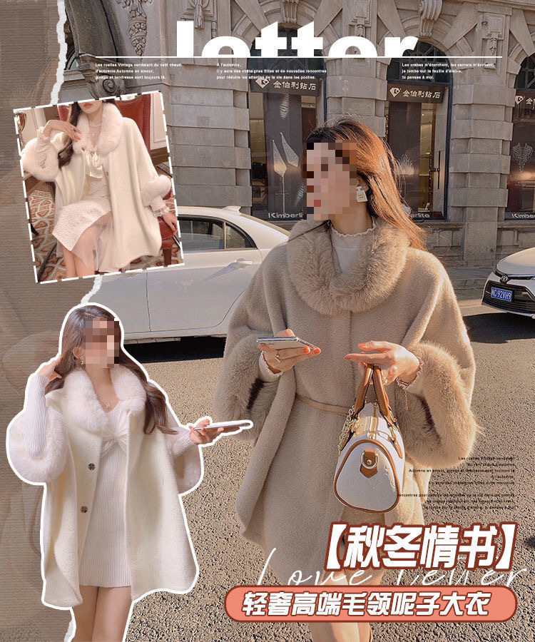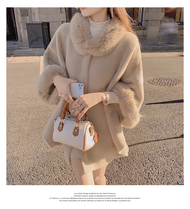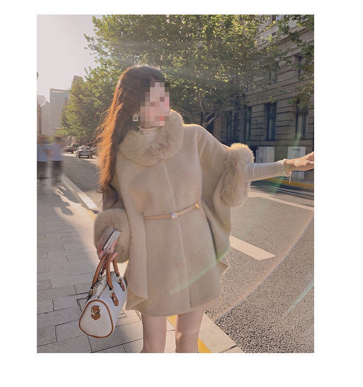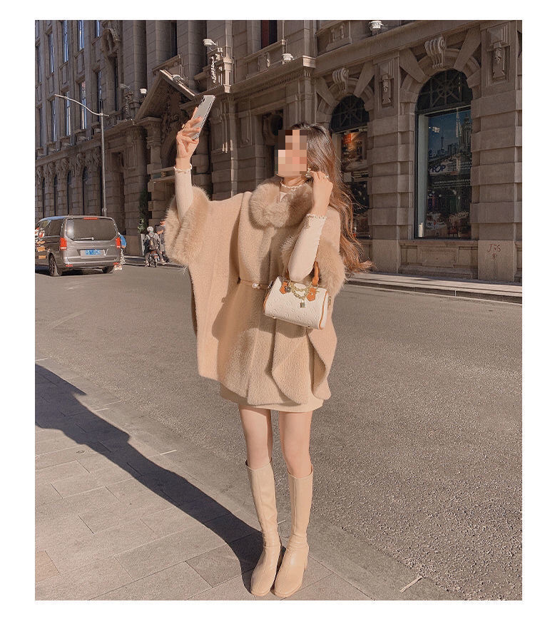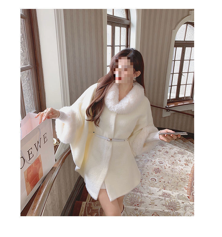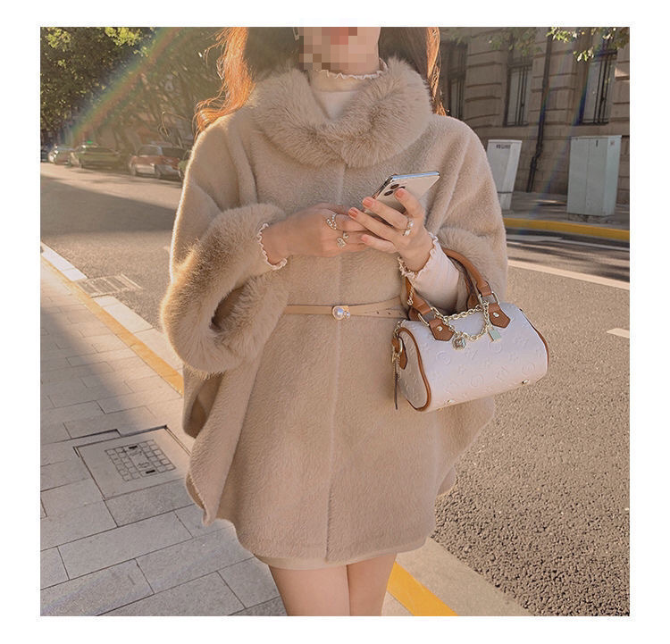 斗篷外套女秋冬披肩2024年冬季新款法式毛呢大毛领收腰大衣小个子