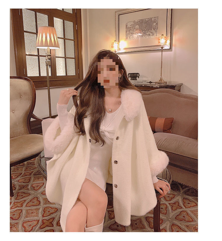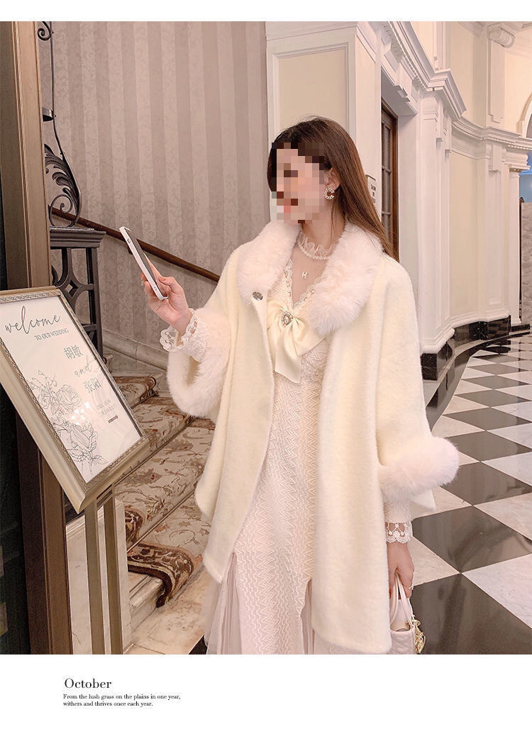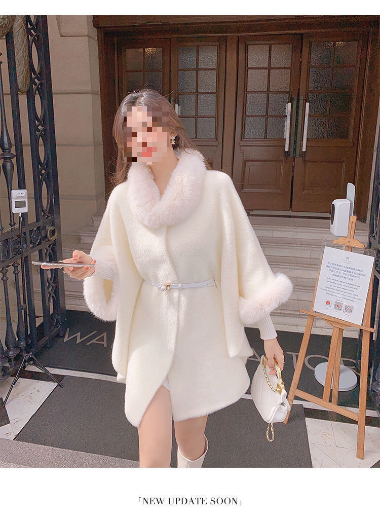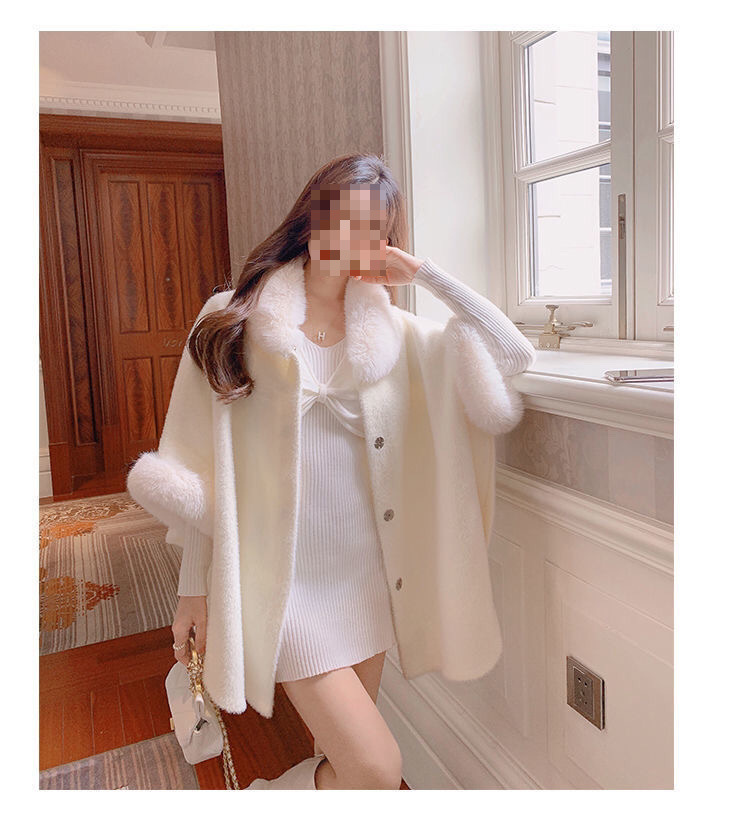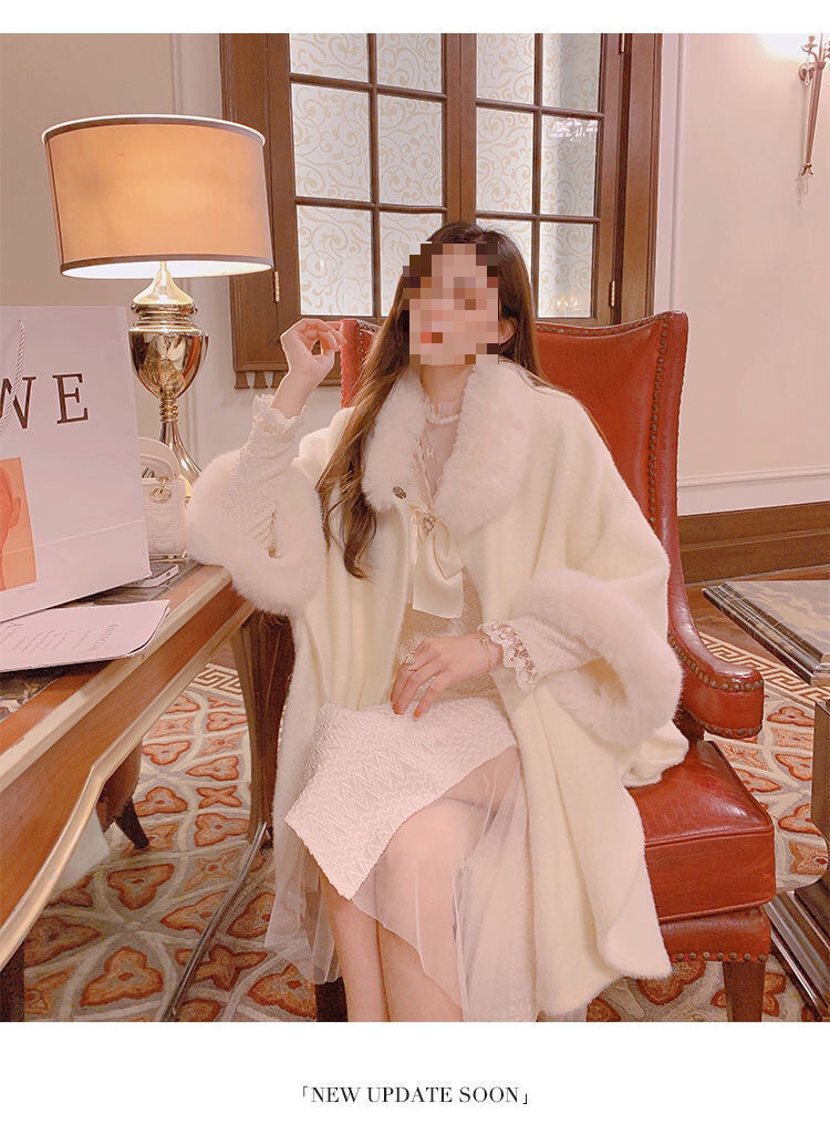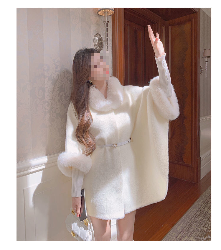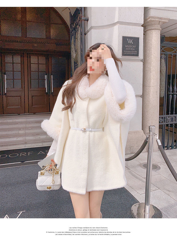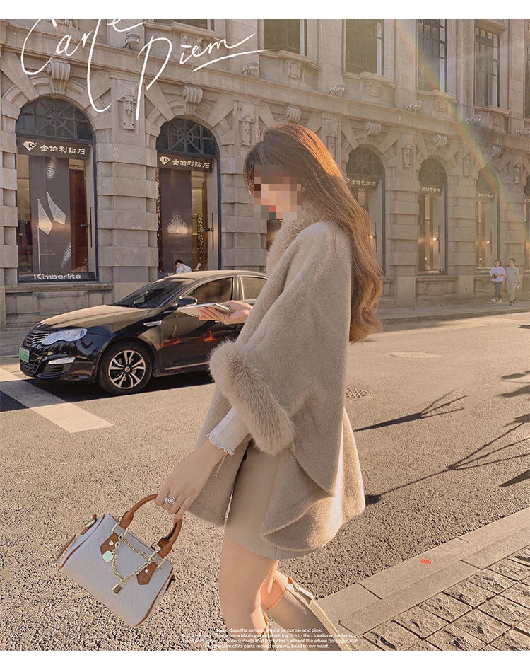 斗篷外套女秋冬披肩2024年冬季新款法式毛呢大毛领收腰大衣小个子