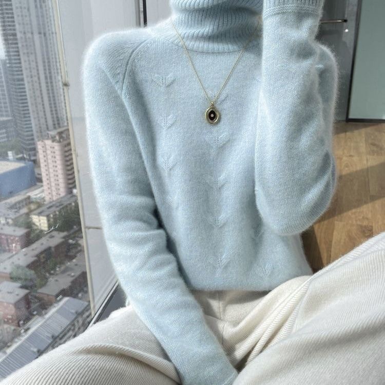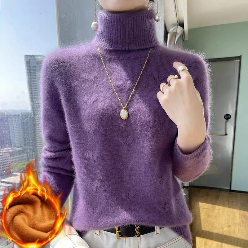 软糯毛衣女加绒加厚新款针织衫宽松套头高领打底衫秋冬保暖百搭