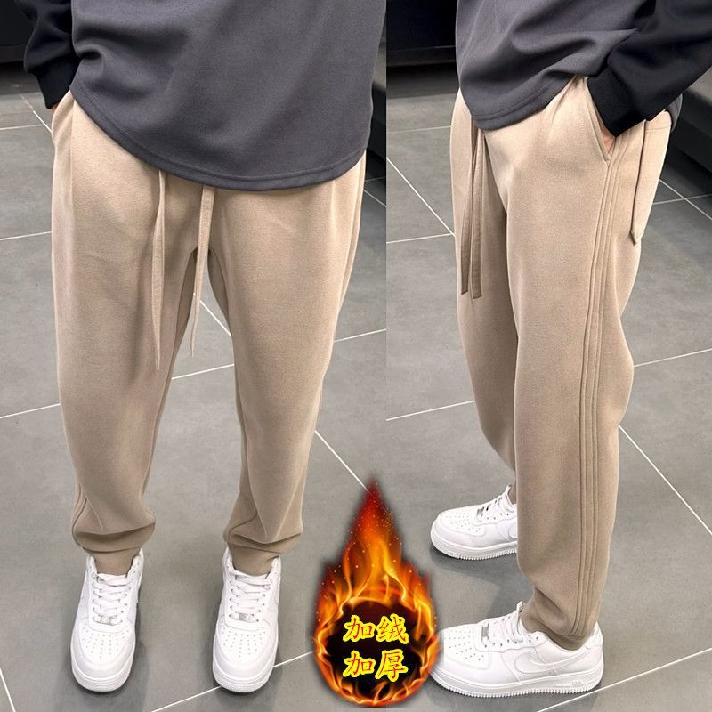 秋冬新款加绒加厚宽松束脚卫裤男士潮流百搭哈伦弹力显瘦休闲长裤