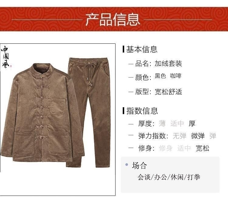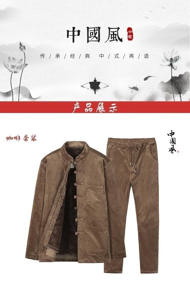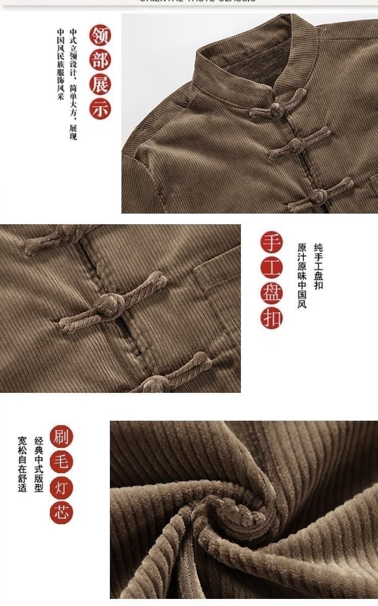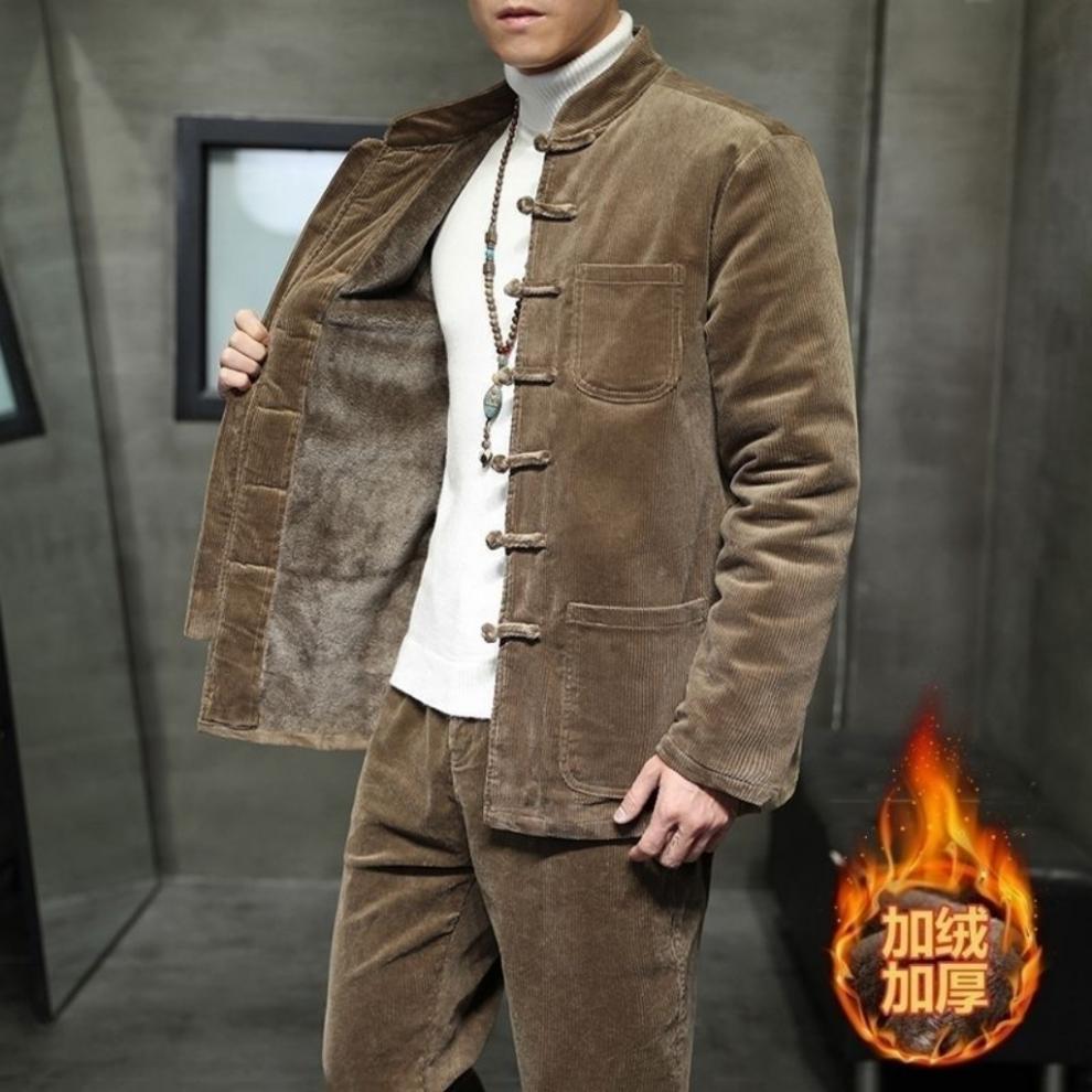 春秋冬季灯芯绒中国风唐装套装休闲民族加绒粗条复古盘扣中式外套