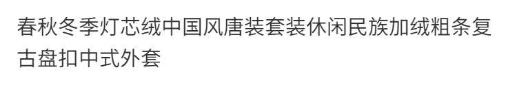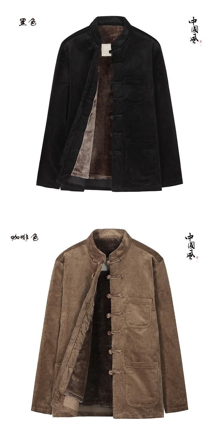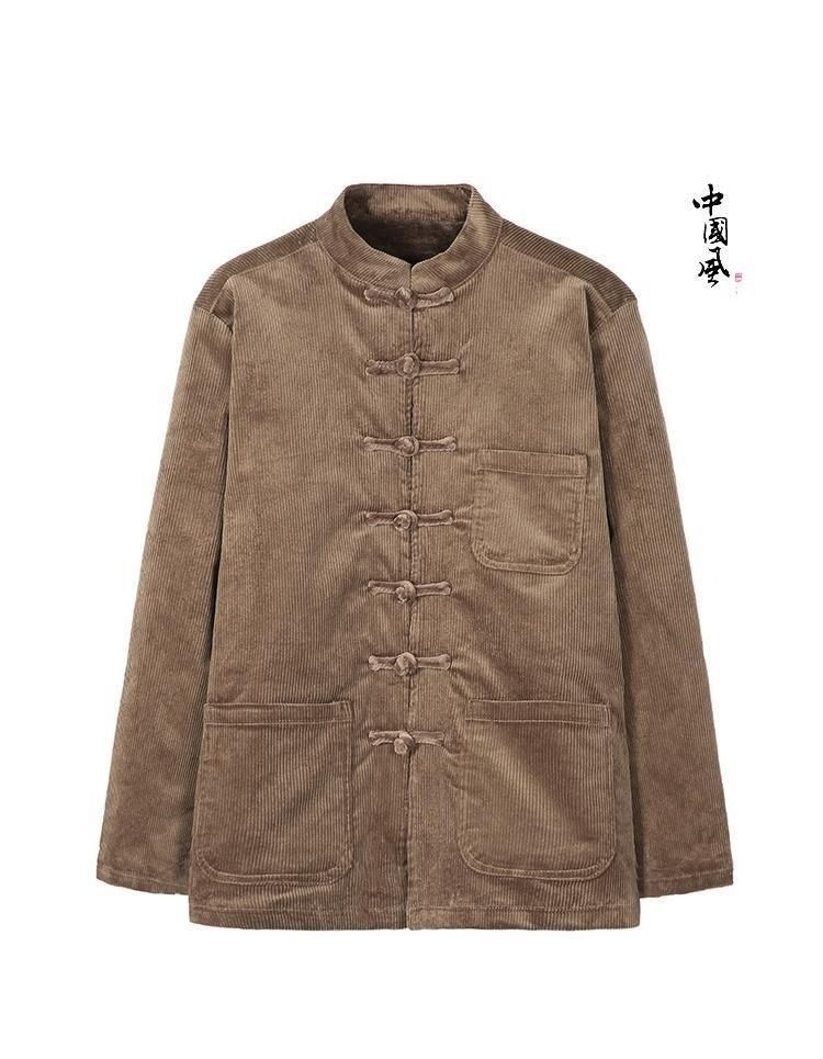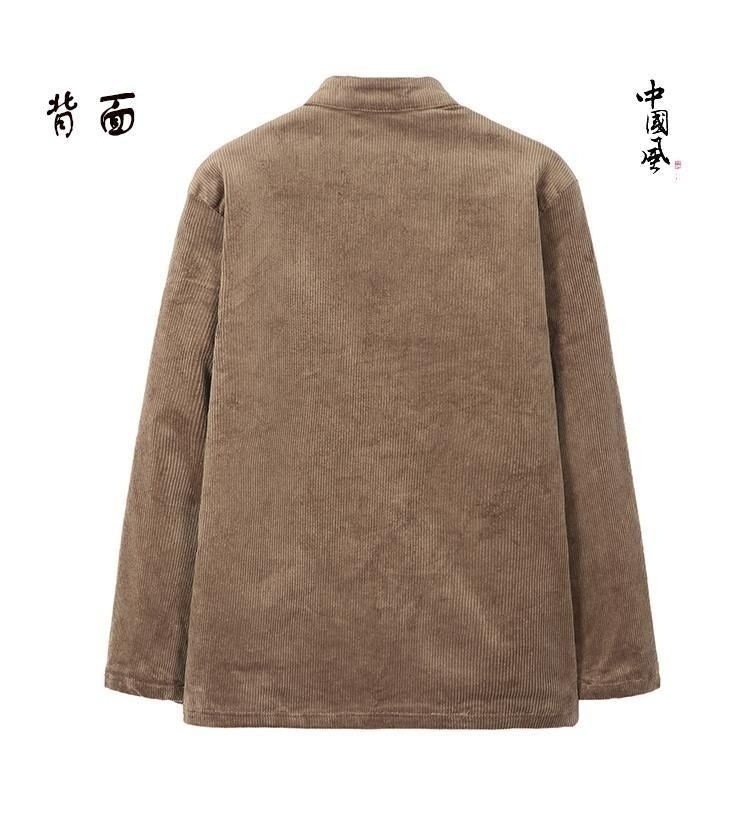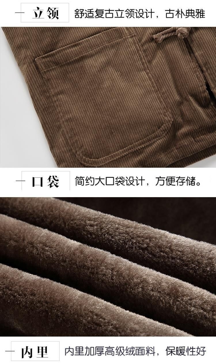 春秋冬季灯芯绒中国风唐装套装休闲民族加绒粗条复古盘扣中式外套