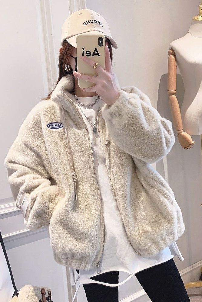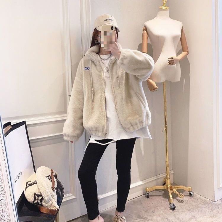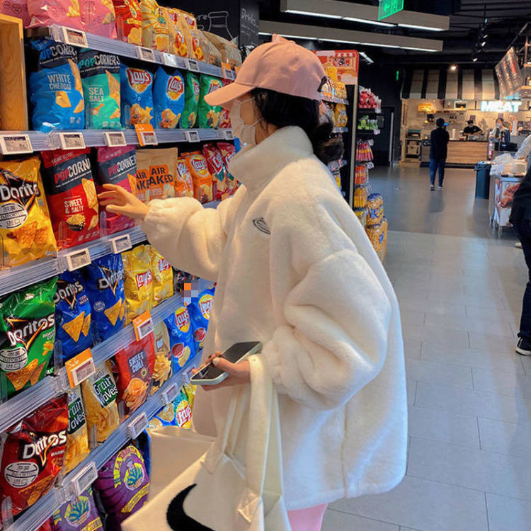 新款羊羔绒外套女仿兔毛时尚百搭女装加棉加厚体闲保暖外套