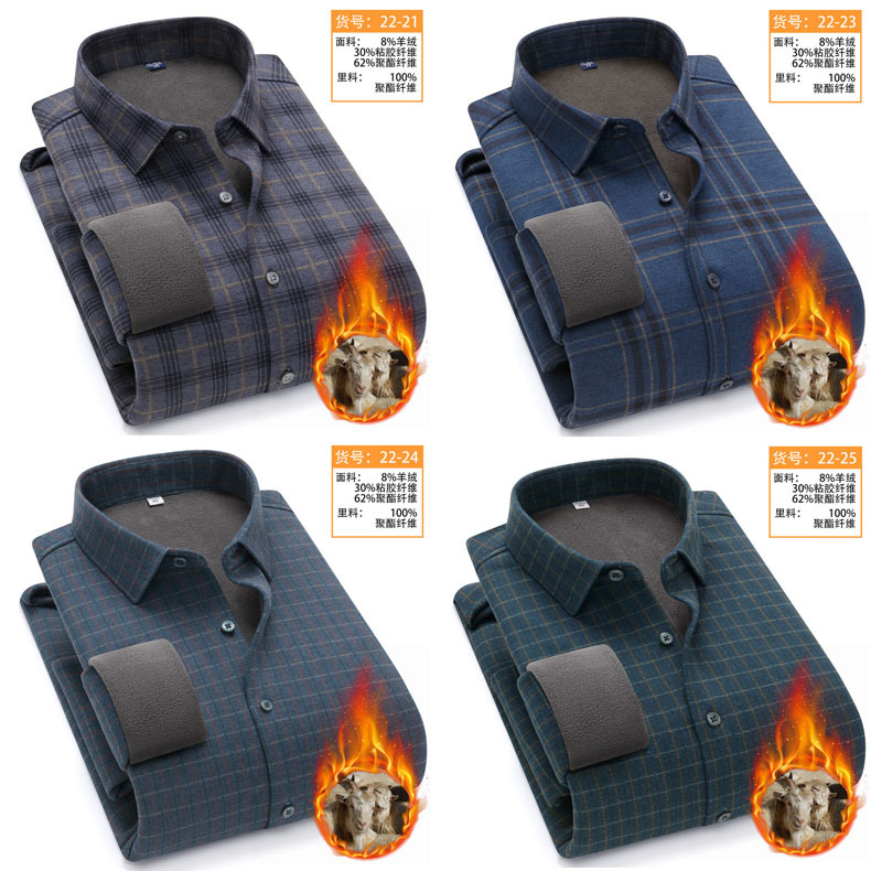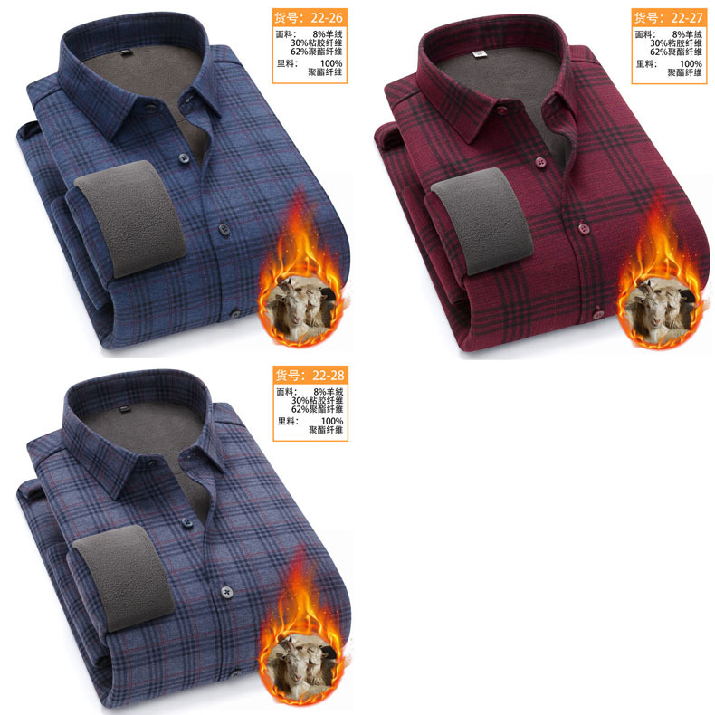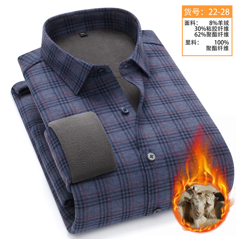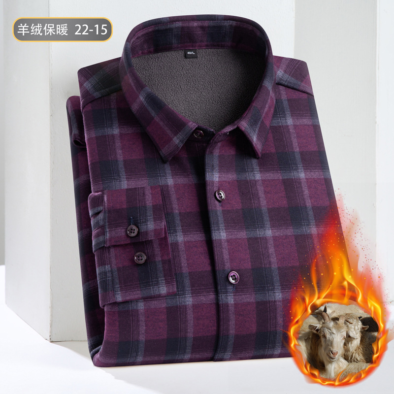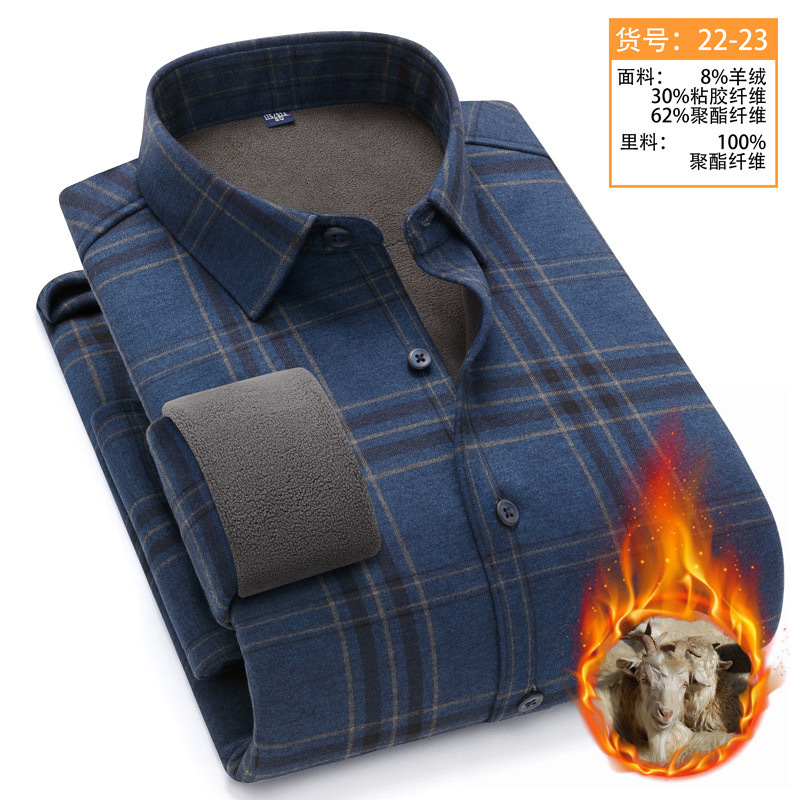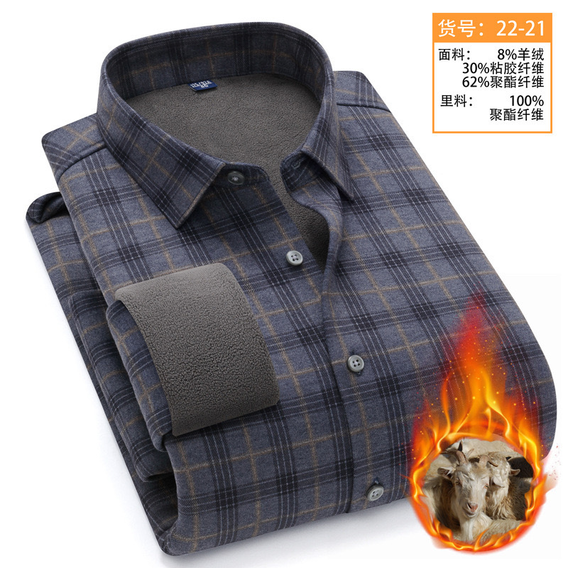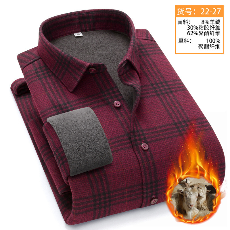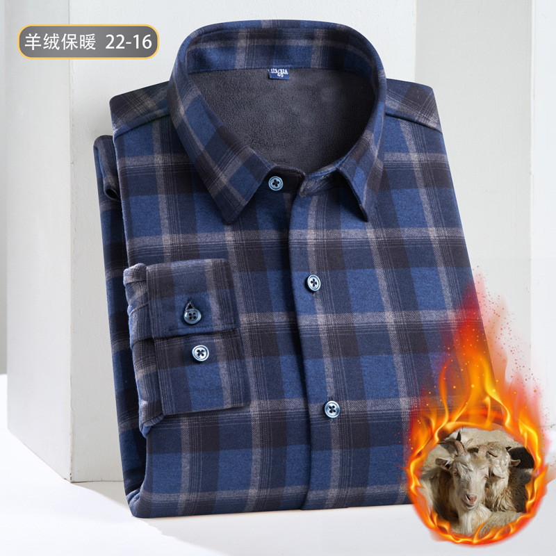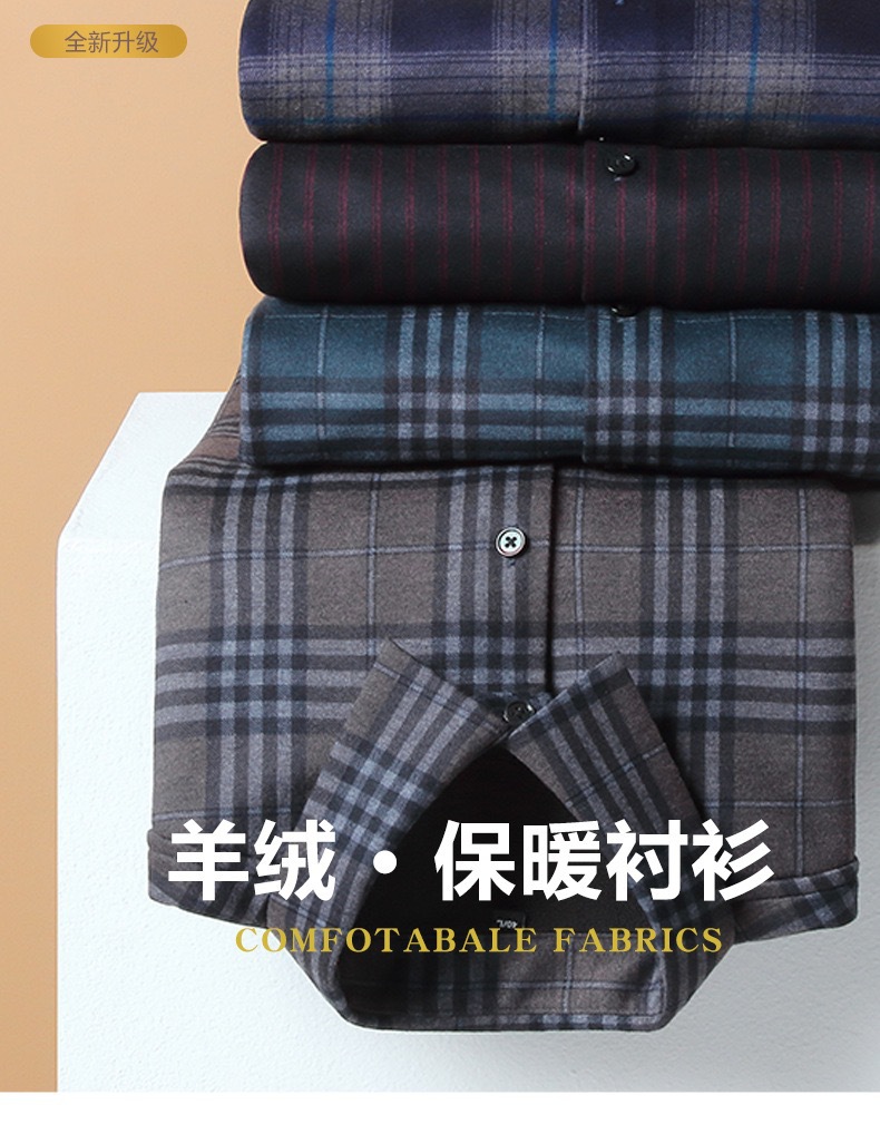 冬季新款保暖衬衫男加绒加厚商务格子羊绒衬衫高档中年男装现货