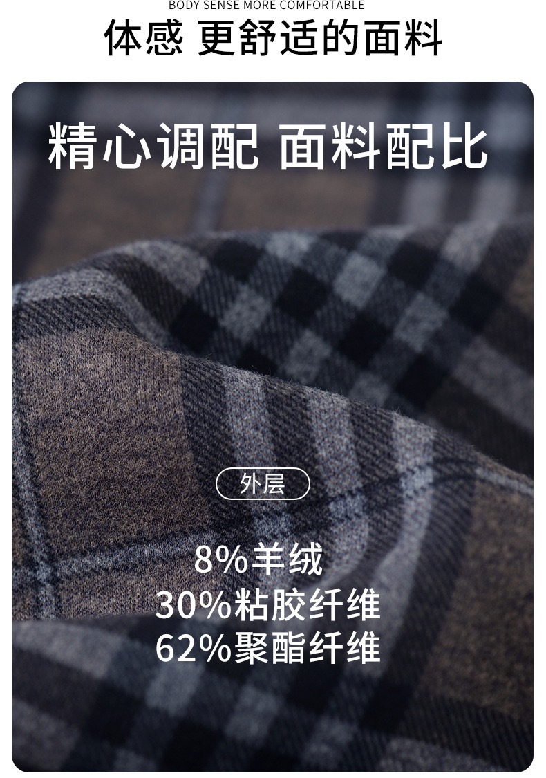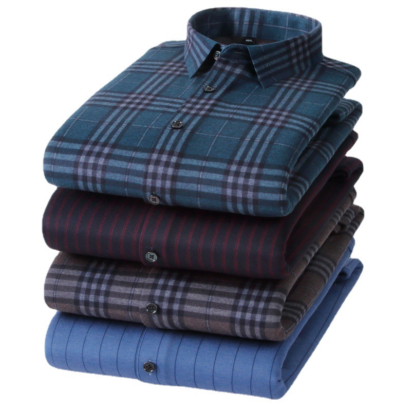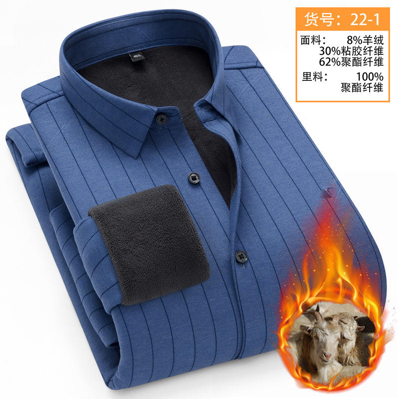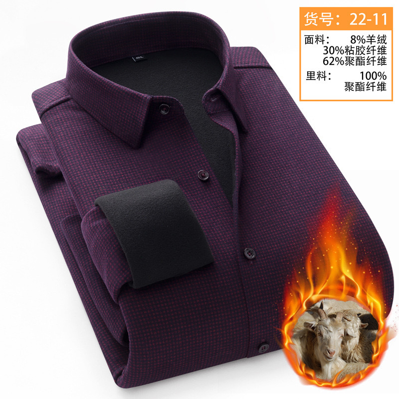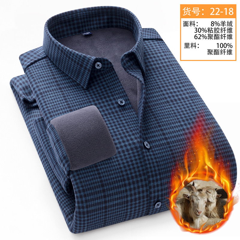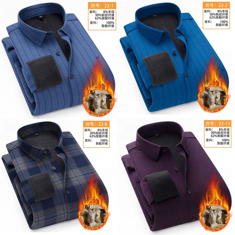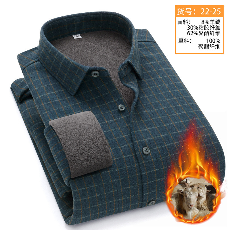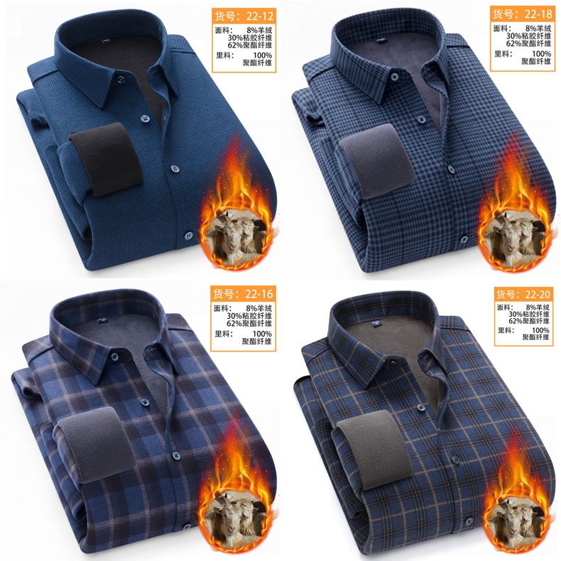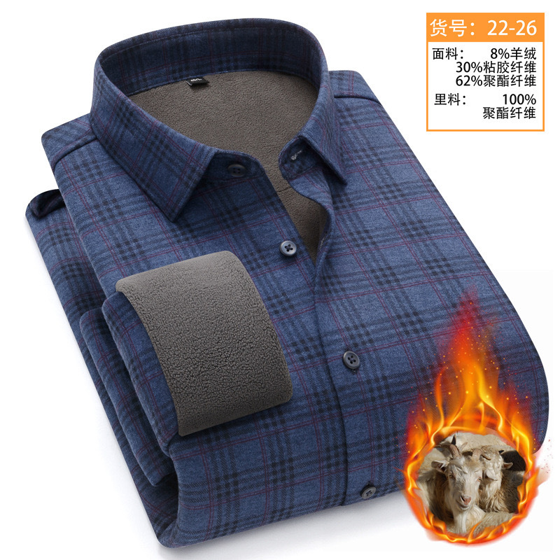 冬季新款保暖衬衫男加绒加厚商务格子羊绒衬衫高档中年男装现货
